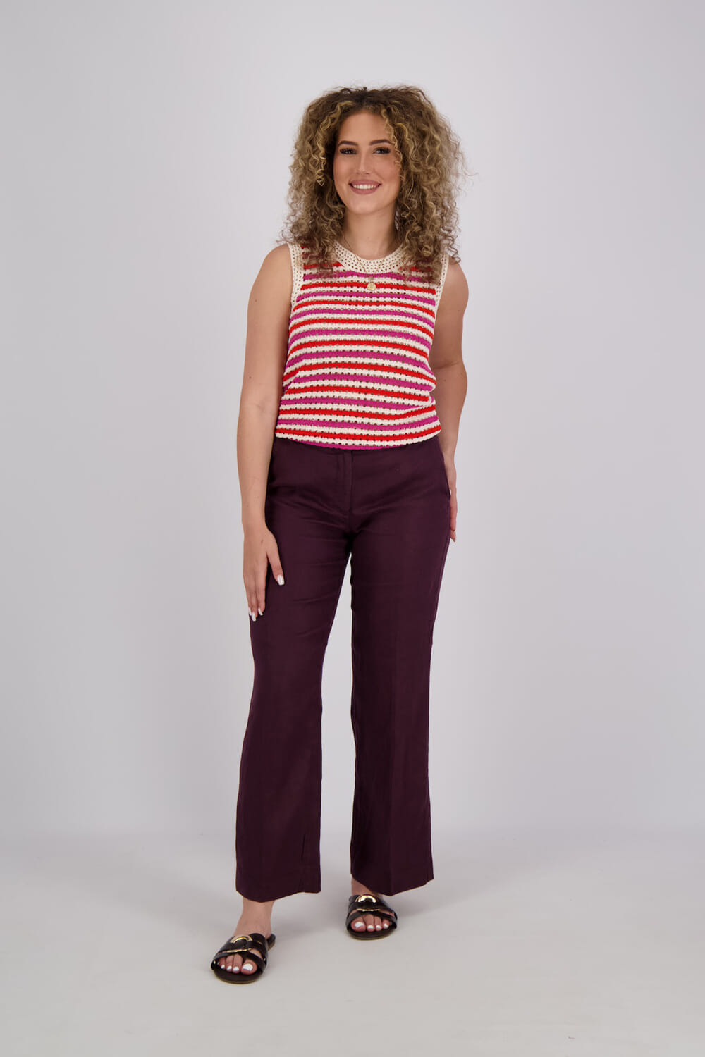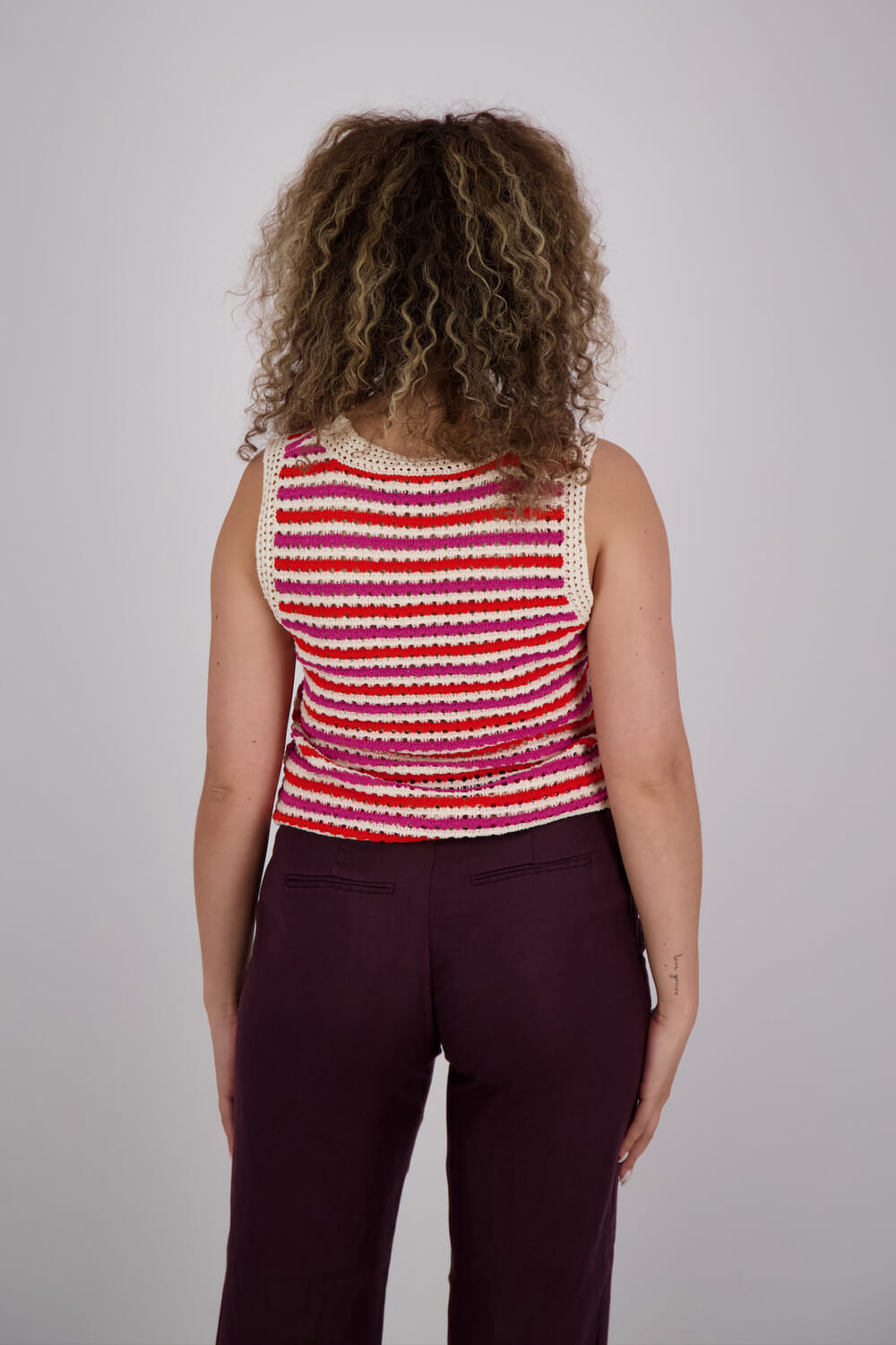 De Top van Geisha, een stijlvolle dames top mouwloos, combineert casual stijl met een speels streeppatroon en een comfortabele ronde hals. De regular pasvorm en het mouwloze ontwerp maken het perfect voor diverse gelegenheden. Ontdek deze veelzijdige top en geef je garderobe een frisse update.