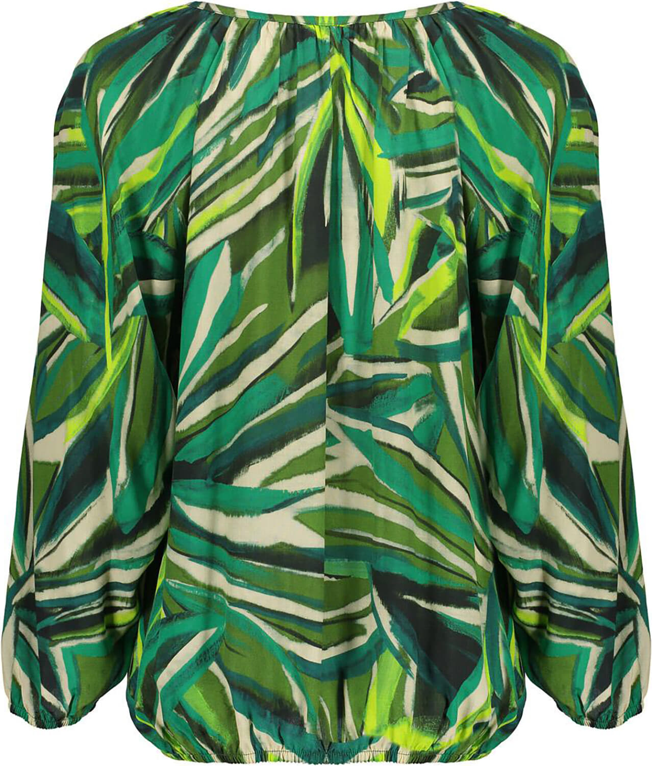 Deze Geisha top, met een bohemian stijl en grafisch patroon, heeft een split hals en lange mouwen. De losse pasvorm zorgt voor comfort en een trendy uitstraling, perfect voor diverse gelegenheden. Deze dames top korte mouw is ideaal om je garderobe te verfrissen.