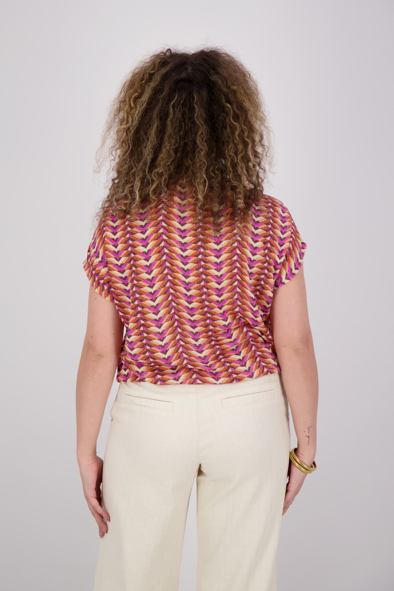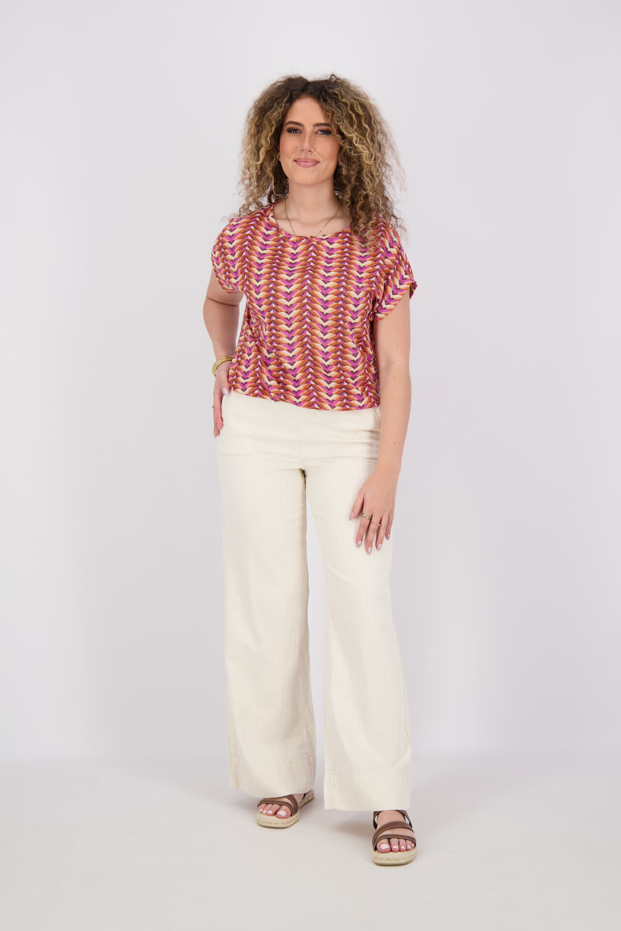 Top korte mouw van Geisha met ronde hals, regular pasvorm en grafisch patroon. Het model valt recht en draagt luchtig door de soepele stof. Korte mouwen met subtiele omslag geven een casual, feminine touch. Combineer met een jeans of een effen broek voor balans.