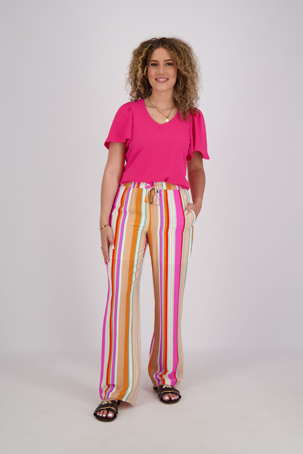 De Top crinckle van Geisha is een stijlvolle dames top korte mouw met een vrouwelijke V-hals en korte mouwen. Het crinkle-materiaal zorgt voor een unieke textuur, terwijl de levendige roze kleur een frisse uitstraling biedt. Perfect voor elke gelegenheid, van casual tot chic.
