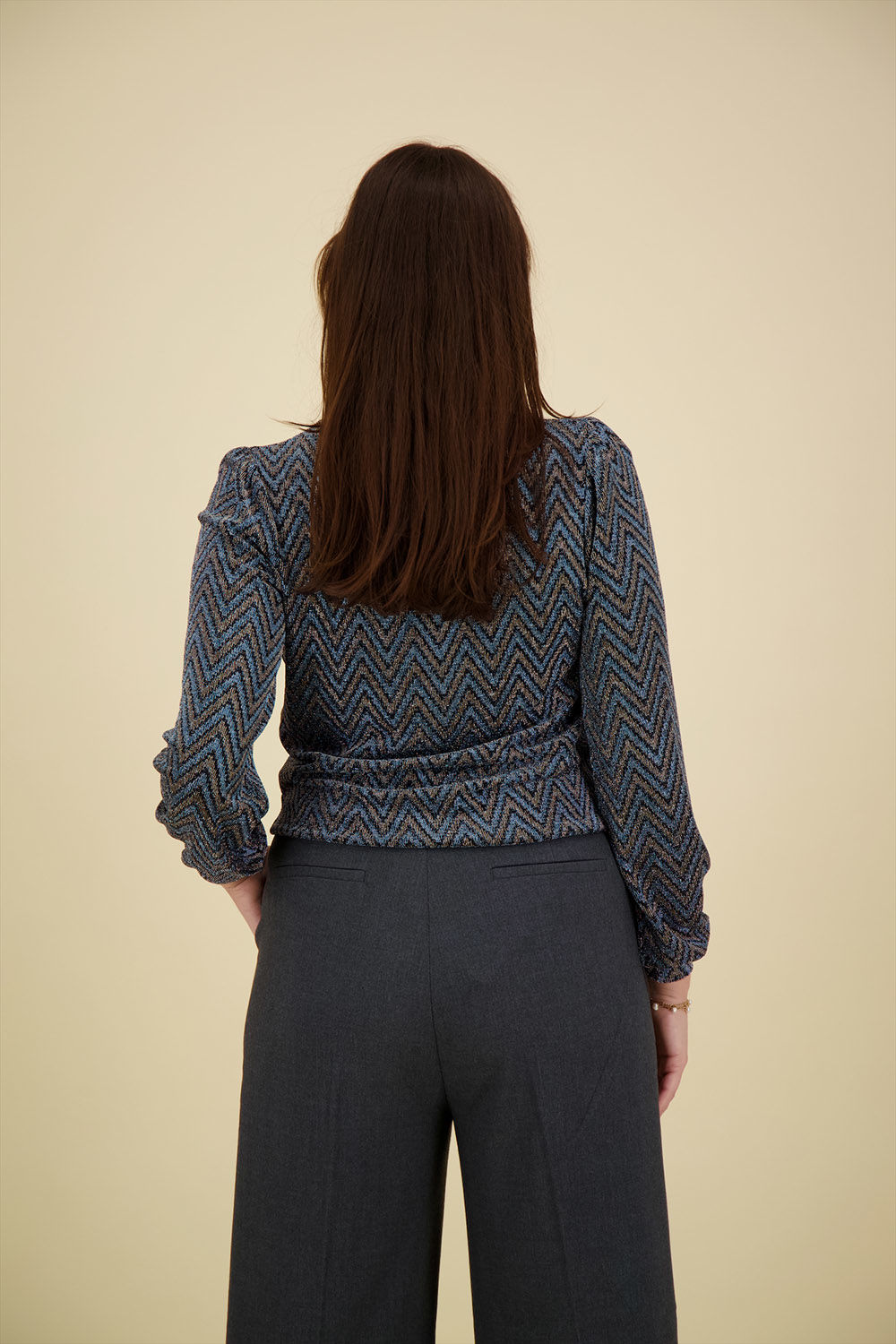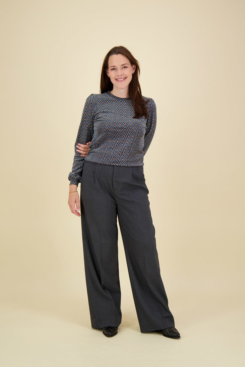 Glitter t shirt van Geisha met lange mouwen en een ronde hals. Dit model heeft een allover zigzag patroon.