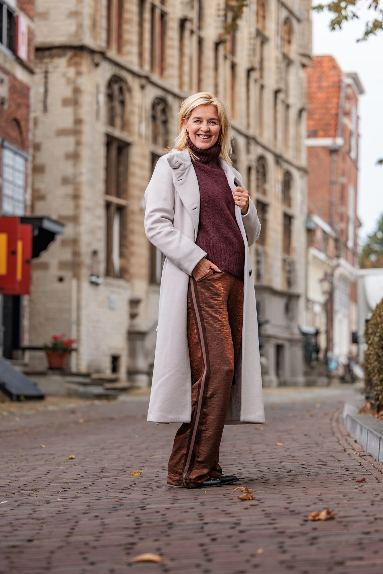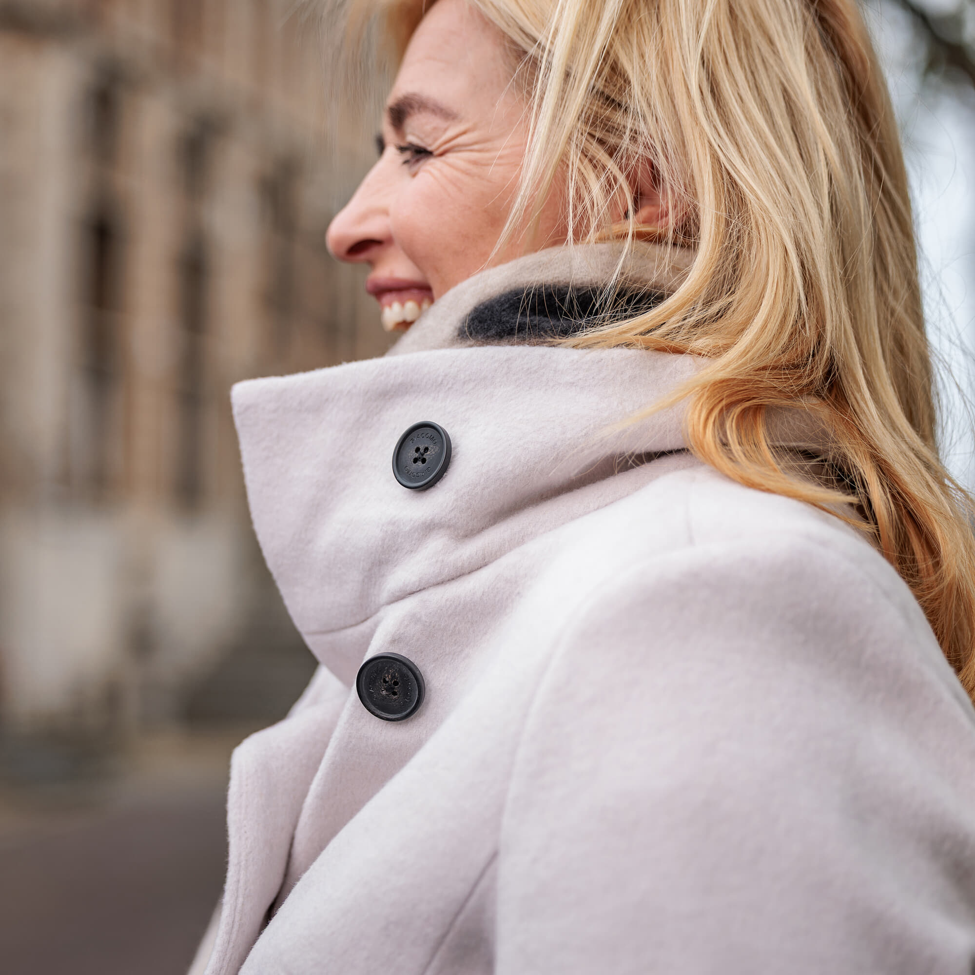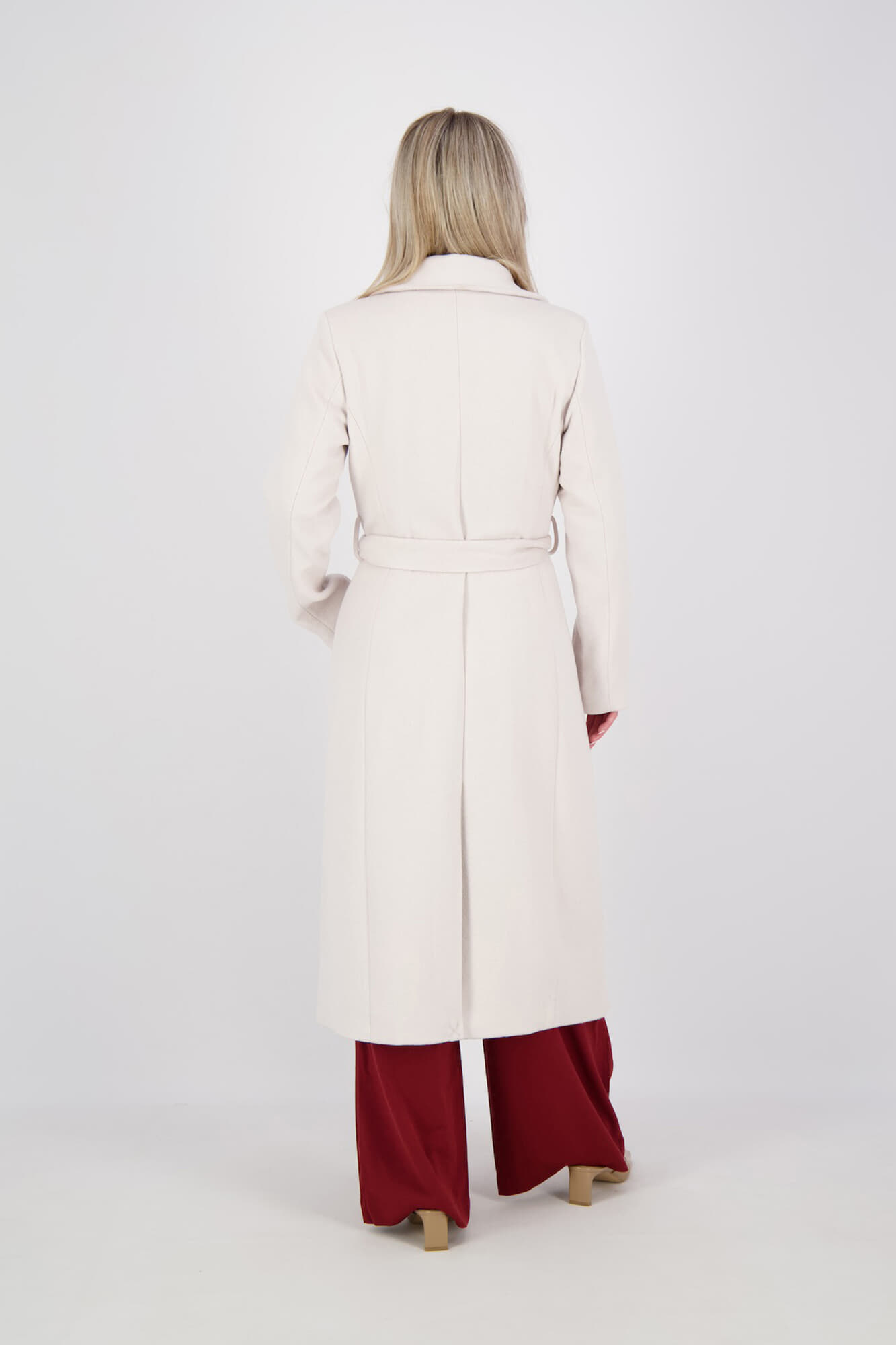 De Wollen Lange Mantel van Giacomo biedt een stijlvolle uitstraling met zijn hoge halslijn en knoopsluiting. Deze trenchcoat, gemaakt voor verfijnde gelegenheden, heeft lange mouwen en een elegant ontwerp dat past bij de dames wollen jas categorie, perfect voor een chique look.