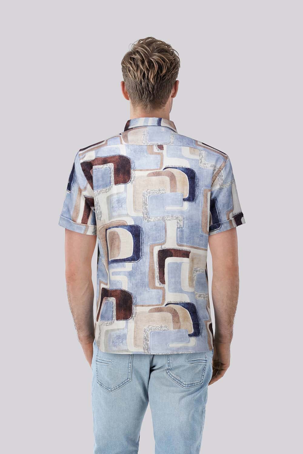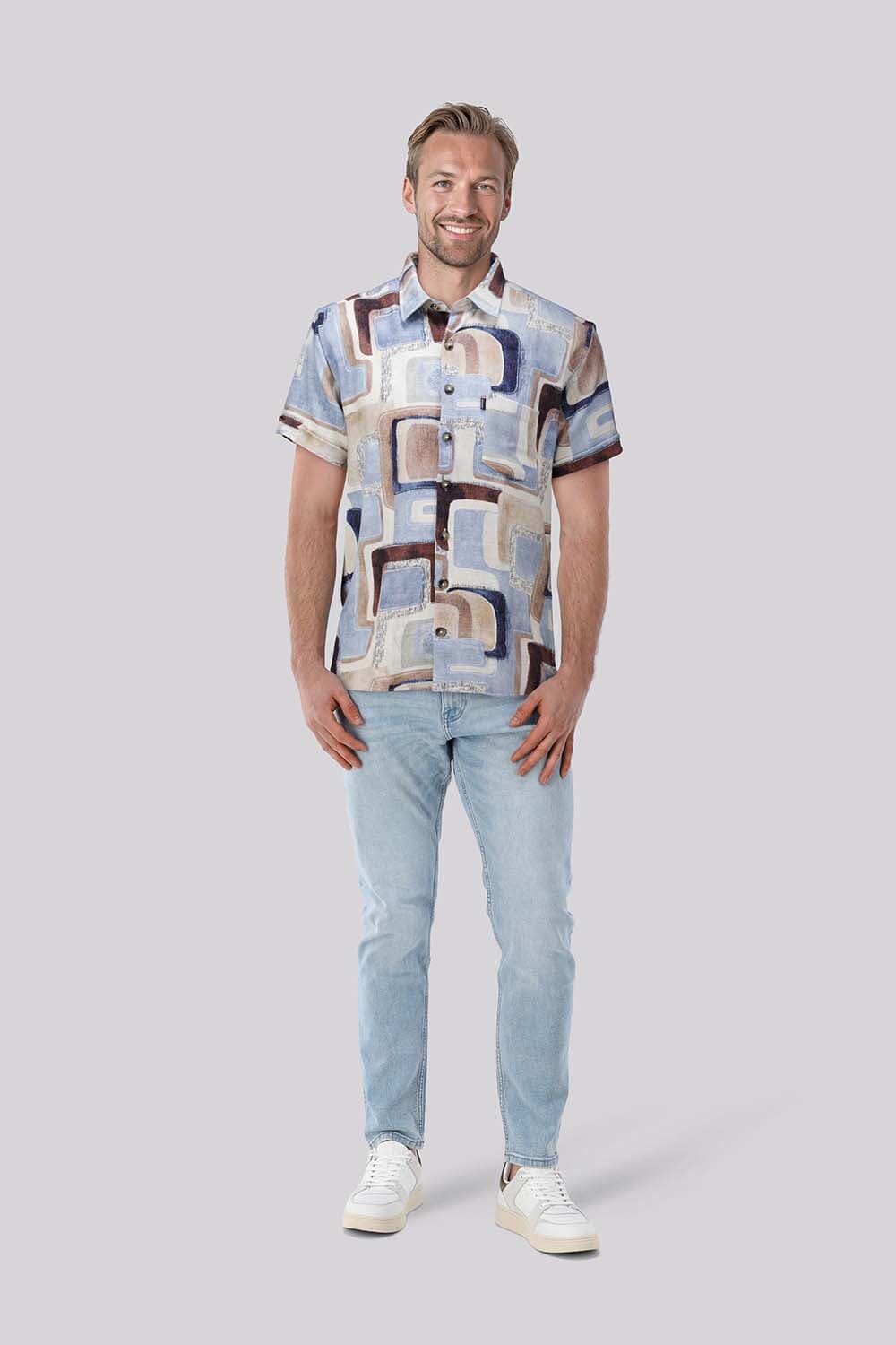 Overhemd Vivaro, heren overhemd met korte mouw van Giordano heeft een grafisch patroon in blauw, beige en bruin, een spreidkraag, overhemdkraag en knoopsluiting, plus een borstzak op de voorzijde. Casual, trendy en makkelijk te combineren met jeans of chino voor een verzorgde uitstraling.