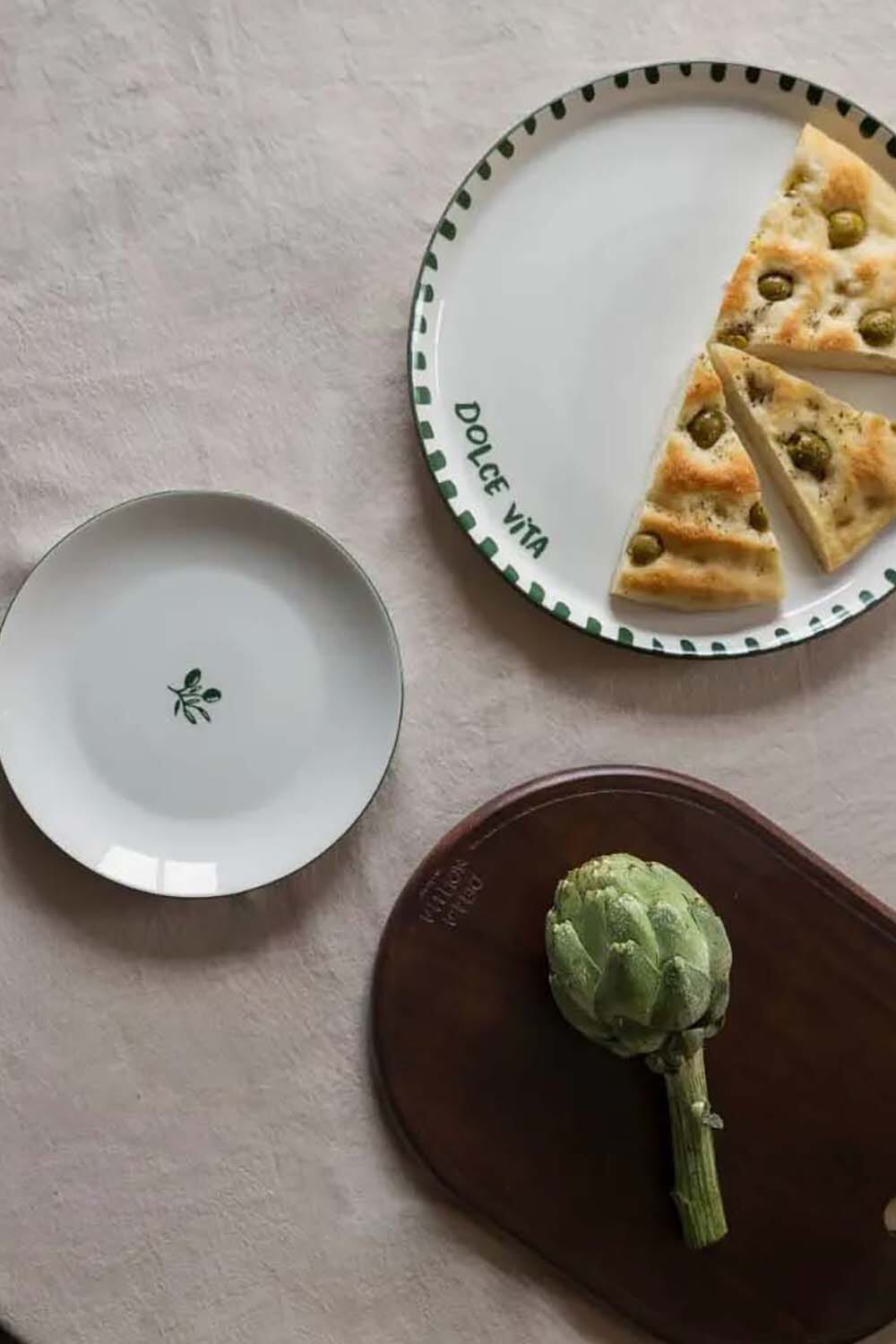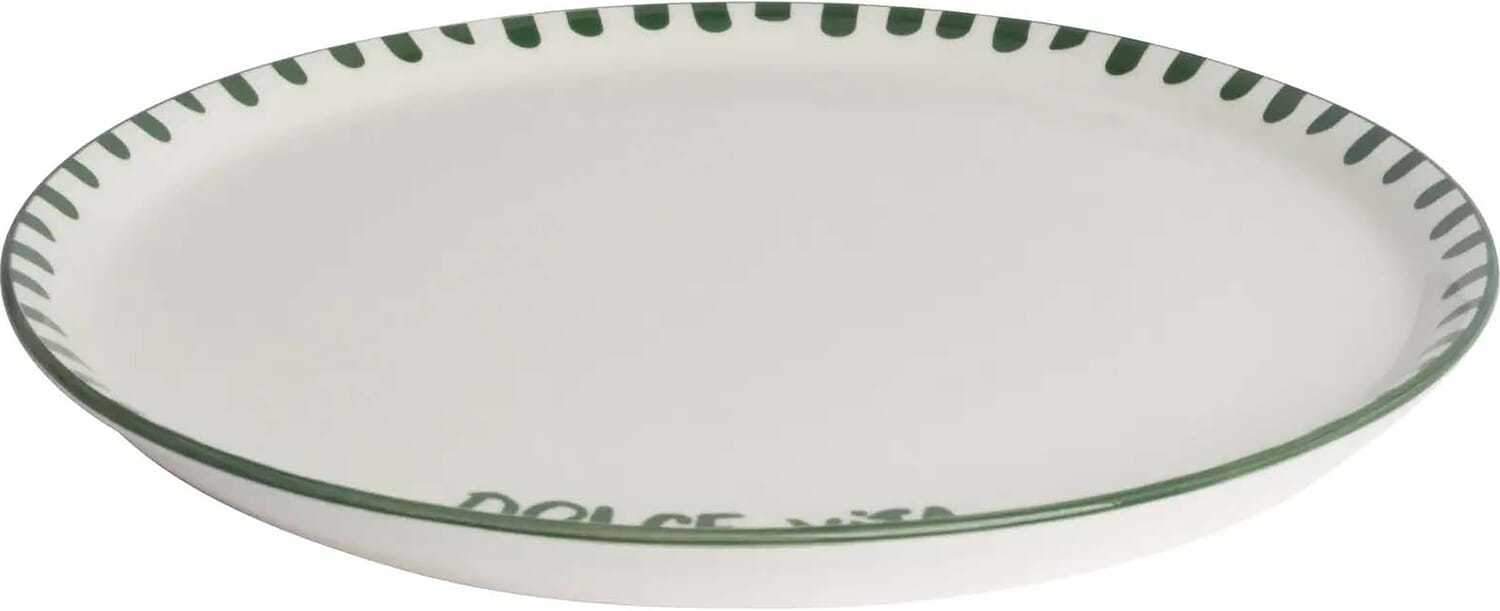 Het Della Nonna Pizzabord 30cm van Gusta is een stijlvol serviesstuk met een effen patroon en groene accenten. Dit pizzabord voegt een warme en gastvrije sfeer toe aan elke maaltijd, ideaal voor het serveren van pizza's en andere lekkernijen.