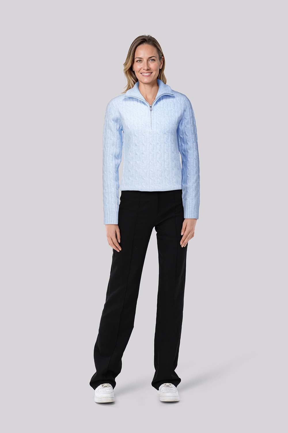 De Mea dames coltrui van HV Society combineert casual stijl met een comfortabele pasvorm. Met een col en rits voor extra warmte en gemak, en lange mouwen in een effen patroon, biedt deze trui een tijdloze look die perfect is voor elke gelegenheid.