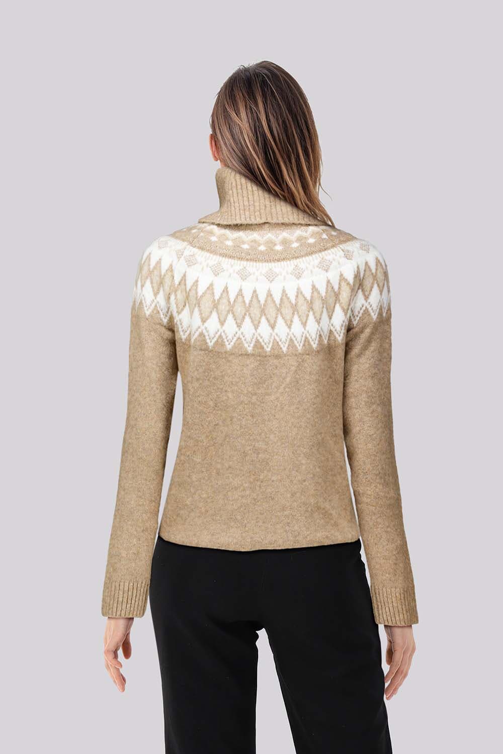 De Nunzia dames coltrui van HV Society combineert stijl en comfort met een col en lange mouwen. Het grafische patroon voegt een modieuze twist toe, perfect voor elke gelegenheid. Deze coltrui biedt warmte en een stijlvolle uitstraling.