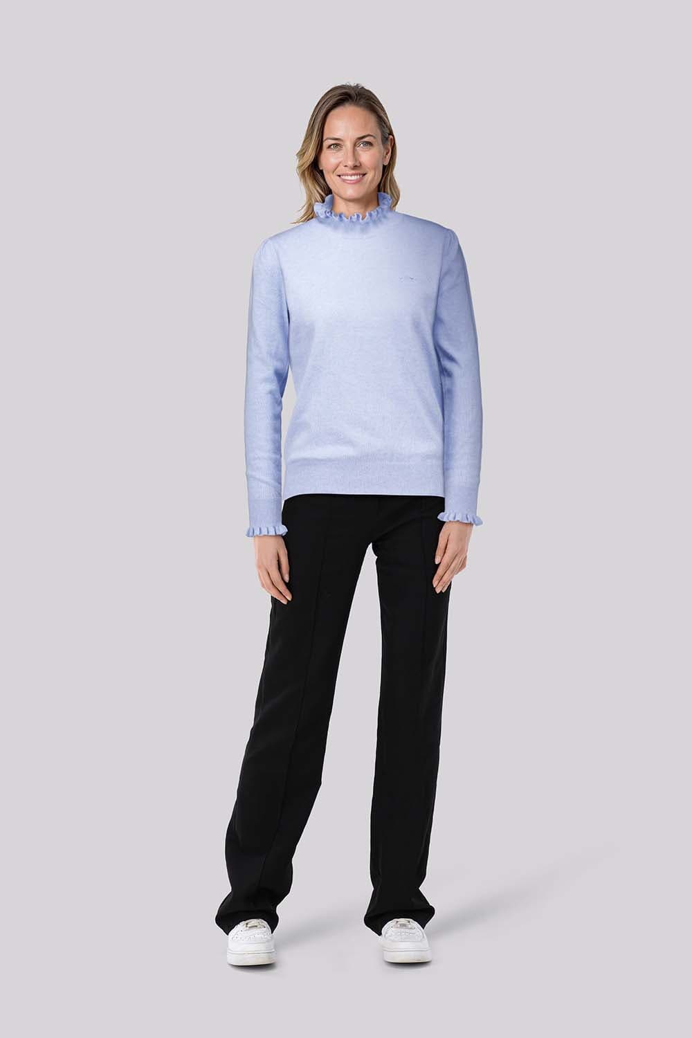 De Lanza trui van HV Society, een dames trui met een ronde halslijn en lange mouwen, is perfect voor casual gelegenheden. Met zijn vrouwelijke en verfijnde stijl biedt deze effen slimfit trui zowel comfort als elegantie, ideaal voor elke garderobe.