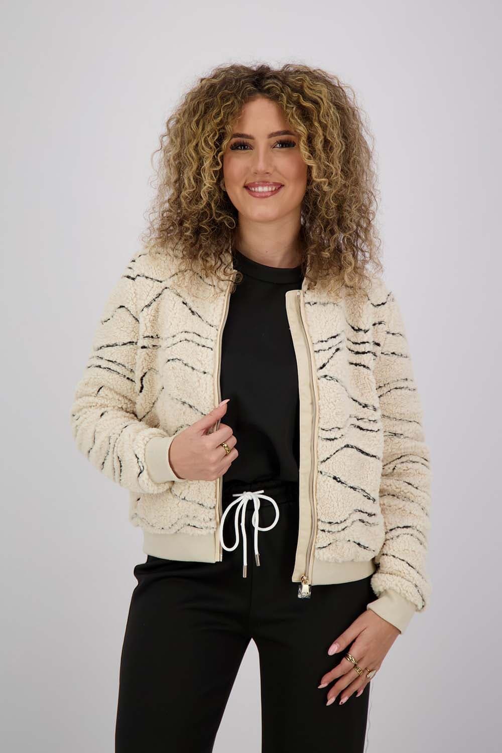 Vest Erina van HV Society is een stijlvol en warm vest met een grafisch patroon. Het is voorzien van een ritssluiting en lange mouwen. Deze bomberjas voegt een unieke touch toe aan elke garderobe en combineert moeiteloos comfort en mode.