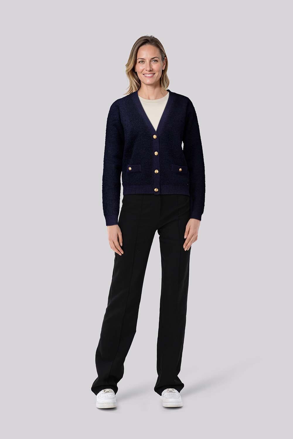 Vest Kiani van HV Society is een stijlvol dames vest met een casual uitstraling. Het heeft een regular pasvorm, lange mouwen en is voorzien van een effen patroon. De knoopsluiting en de zachte stof maken dit vest perfect voor elke gelegenheid.