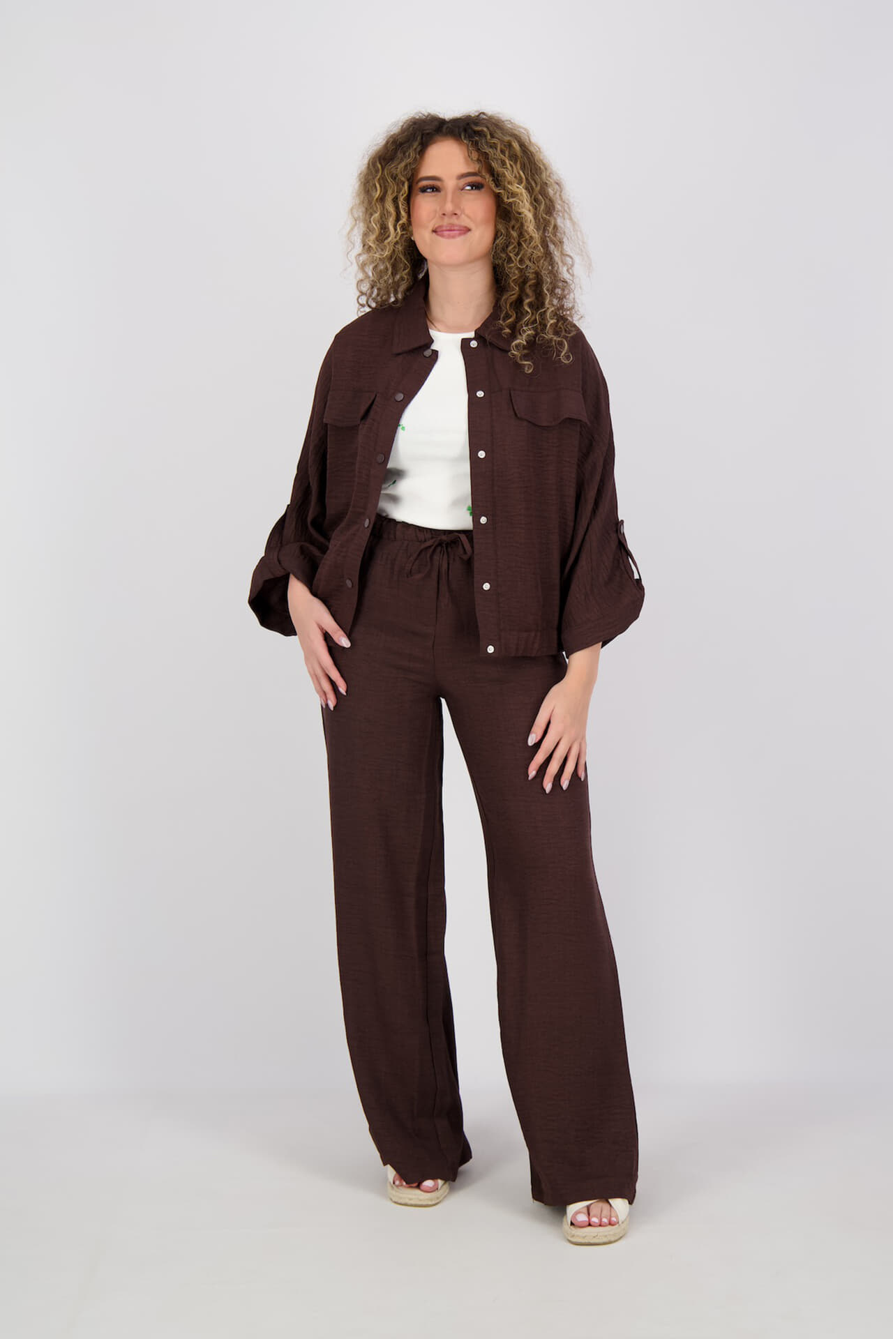 Jas van Ichi in dames jas uitvoering, als overshirt met losse pasvorm en effen dessin. De spreidkraag met overhemdkraag, lange mouwen met opgerolde manchetten en bandje, drukknopen, voorzakken en elastische taille geven comfort en een rustige, minimalistische uitstraling. Draag over een basic top.