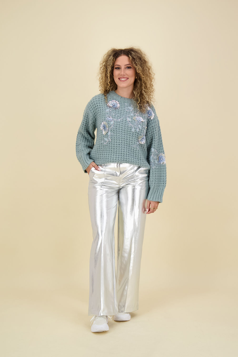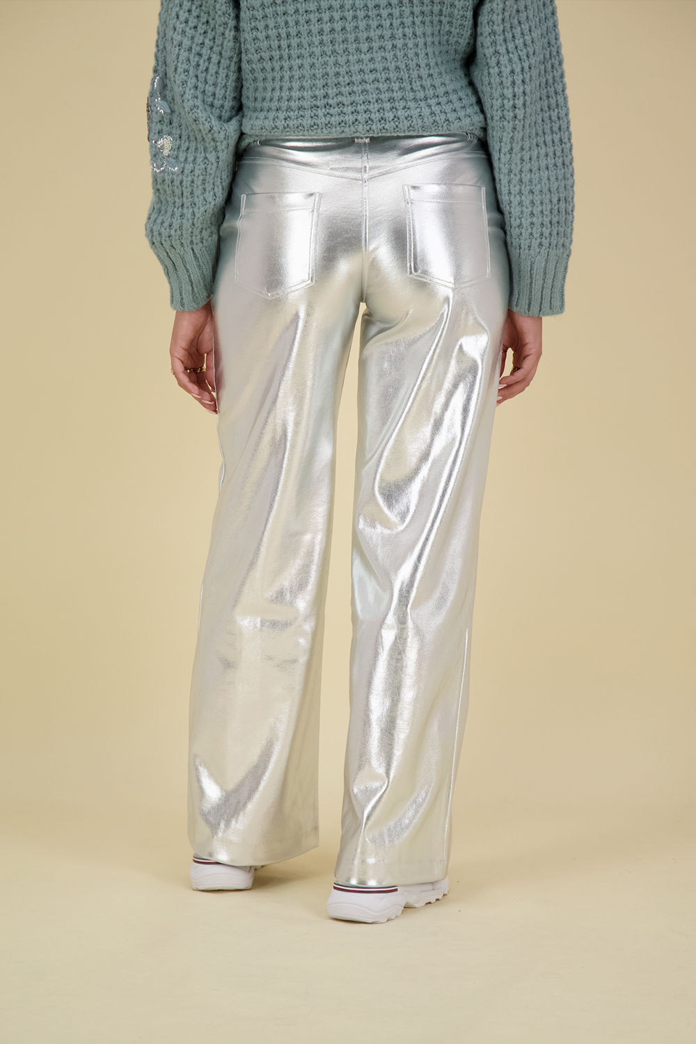 De Pantalon Kate Metallic van Ichi is een stijlvolle pantalon met wijde pijpen en een effen patroon. Uitgerust met zakken op de achterzijde, biedt deze pantalon zowel stijl als functionaliteit. Perfect voor wie op zoek is naar een modieus en comfortabel kledingstuk.