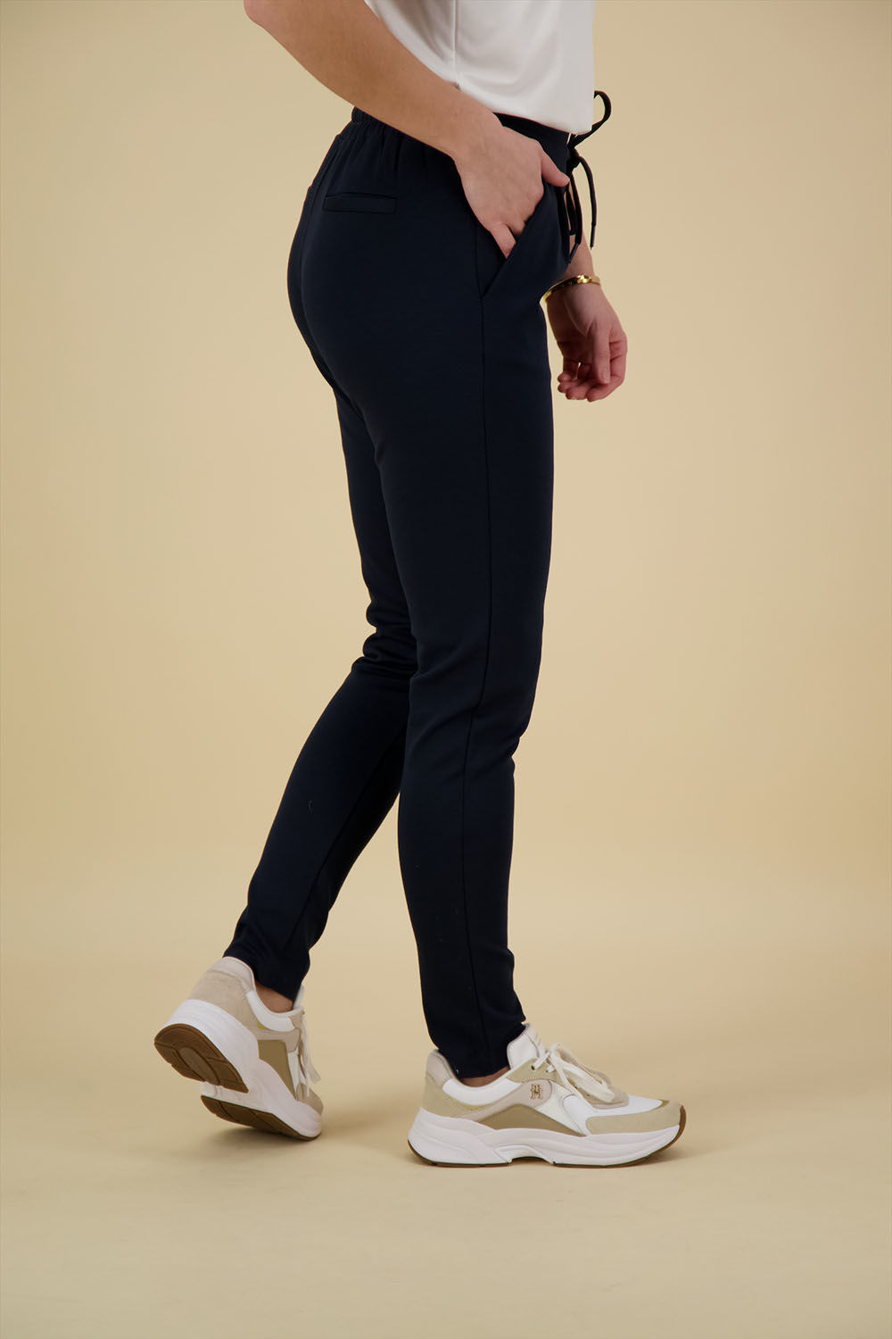 De Kate Pants van Ichi is een stijlvolle dames pantalon met een casual uitstraling. De elastische taille en het koord zorgen voor comfort, terwijl de slim leg fit een eigentijdse look biedt. Voorzien van handige zakken op de voorzijde, ideaal voor dagelijks gebruik.