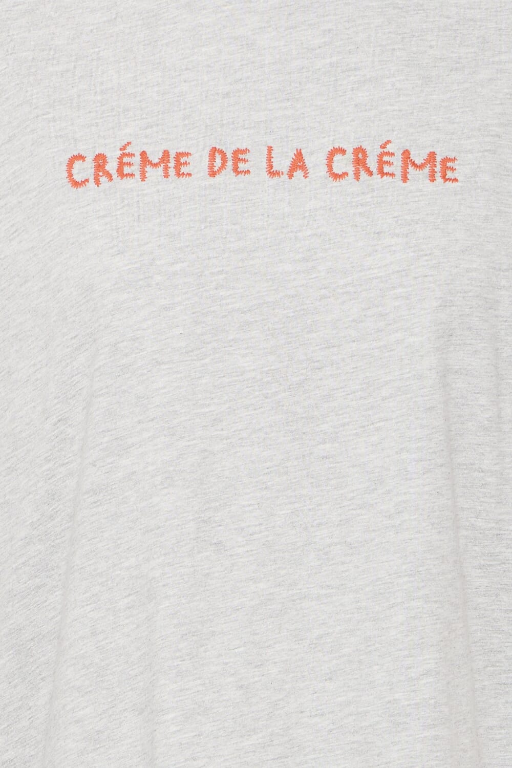 Het T-shirt Madelly van Ichi is een casual dames t-shirt met een ronde hals en korte mouwen. Het effen ontwerp met de opvallende tekst "Crème de la Crème" maakt dit shirt uniek. Ideaal voor een ontspannen gelegenheid en geschikt voor elke garderobe.
