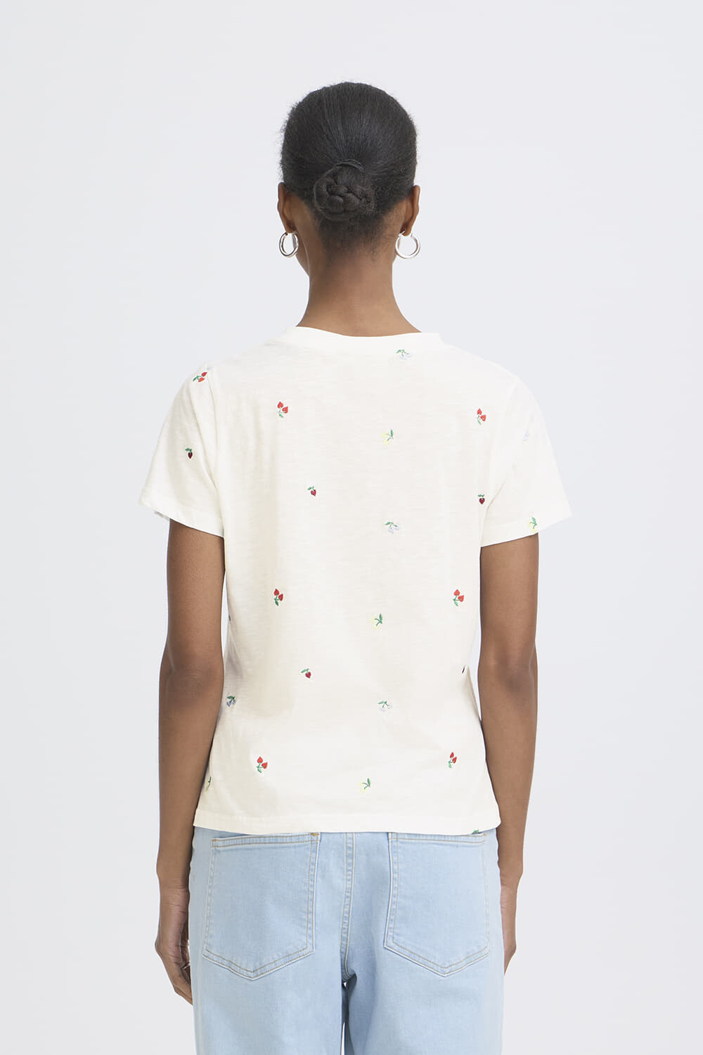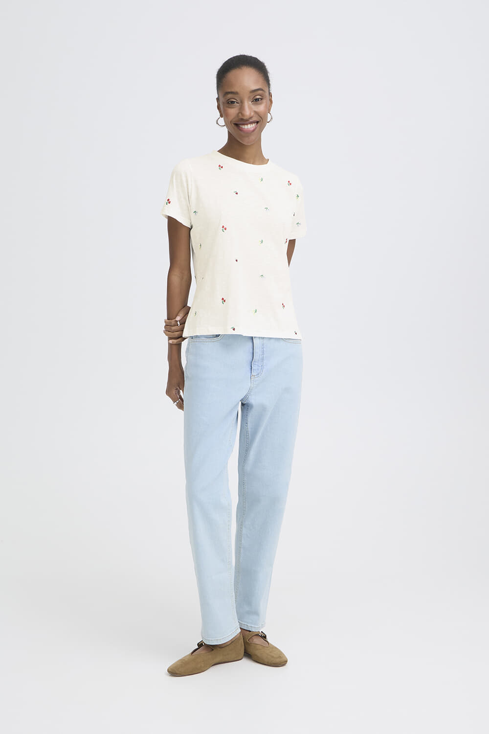 De Top Olya van Ichi is een casual dames top met korte mouw, gemaakt van comfortabele stof. De ronde hals en de korte mouw geven het een ontspannen pasvorm, terwijl het bloemmotief voor een speelse uitstraling zorgt. Ideaal voor een informele gelegenheid.
