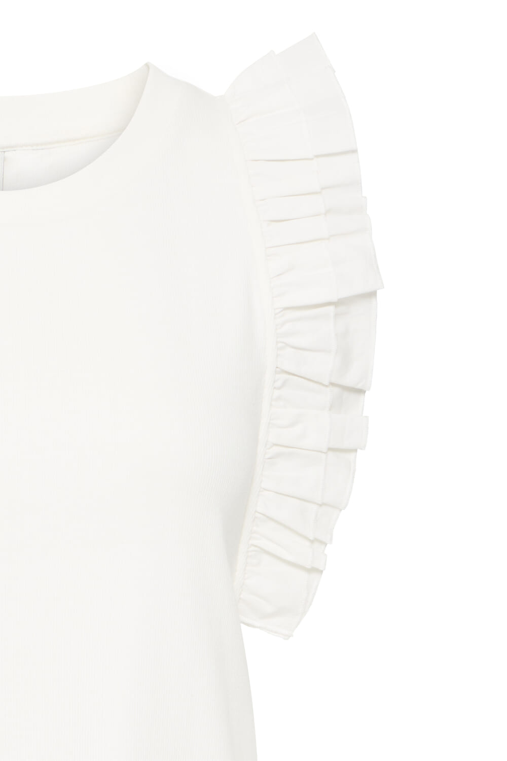 De Top Paityn van Ichi is een stijlvolle dames top mouwloos met een ronde hals en een regular pasvorm. De effen stof en de opvallende ruches aan de schouders geven een vleugje flair aan elke casual gelegenheid. Perfect voor een modieuze, vrouwelijke look.