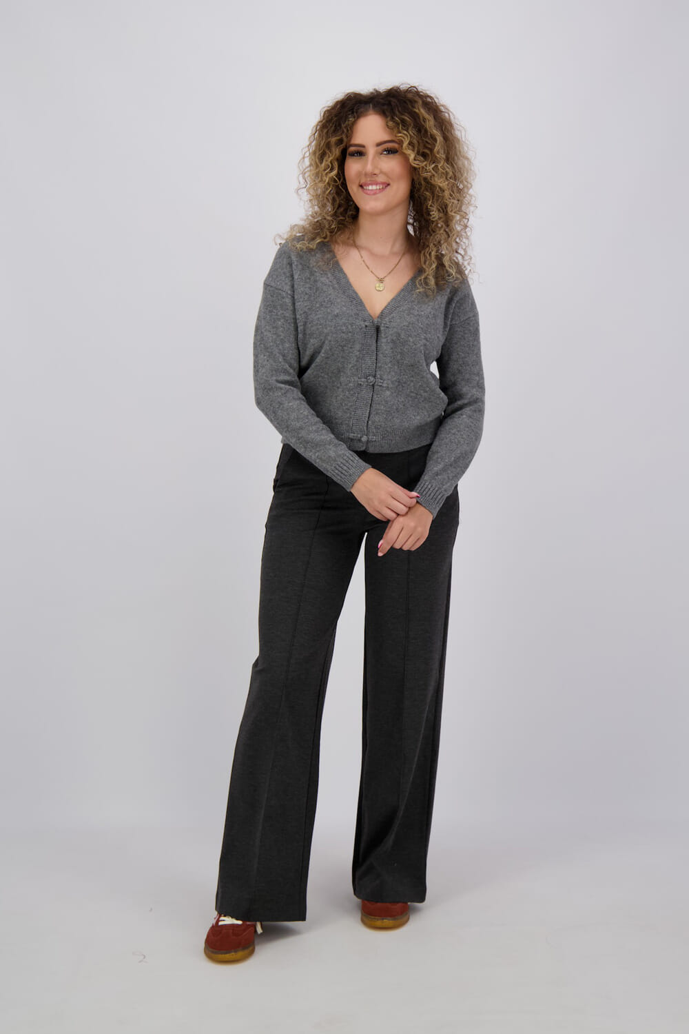 Het Vest Dasila van Ichi is een casual dames vest met een relaxed pasvorm. Het heeft zakken op de voorzijde en een knoopsluiting, met een stijlvolle v-hals. De lange mouwen en het effen patroon maken het ideaal voor elke gelegenheid.