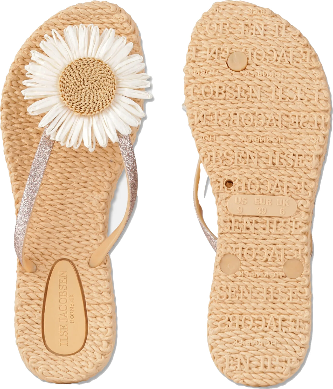 De dames slippers met bloemen van Ilse Jacobsen combineren een bohemian stijl met een effen patroon. De elegante bloem op de slipper biedt een vrolijke touch, terwijl de comfortabele pasvorm zorgt voor een stijlvolle en ontspannen uitstraling voor elke gelegenheid.