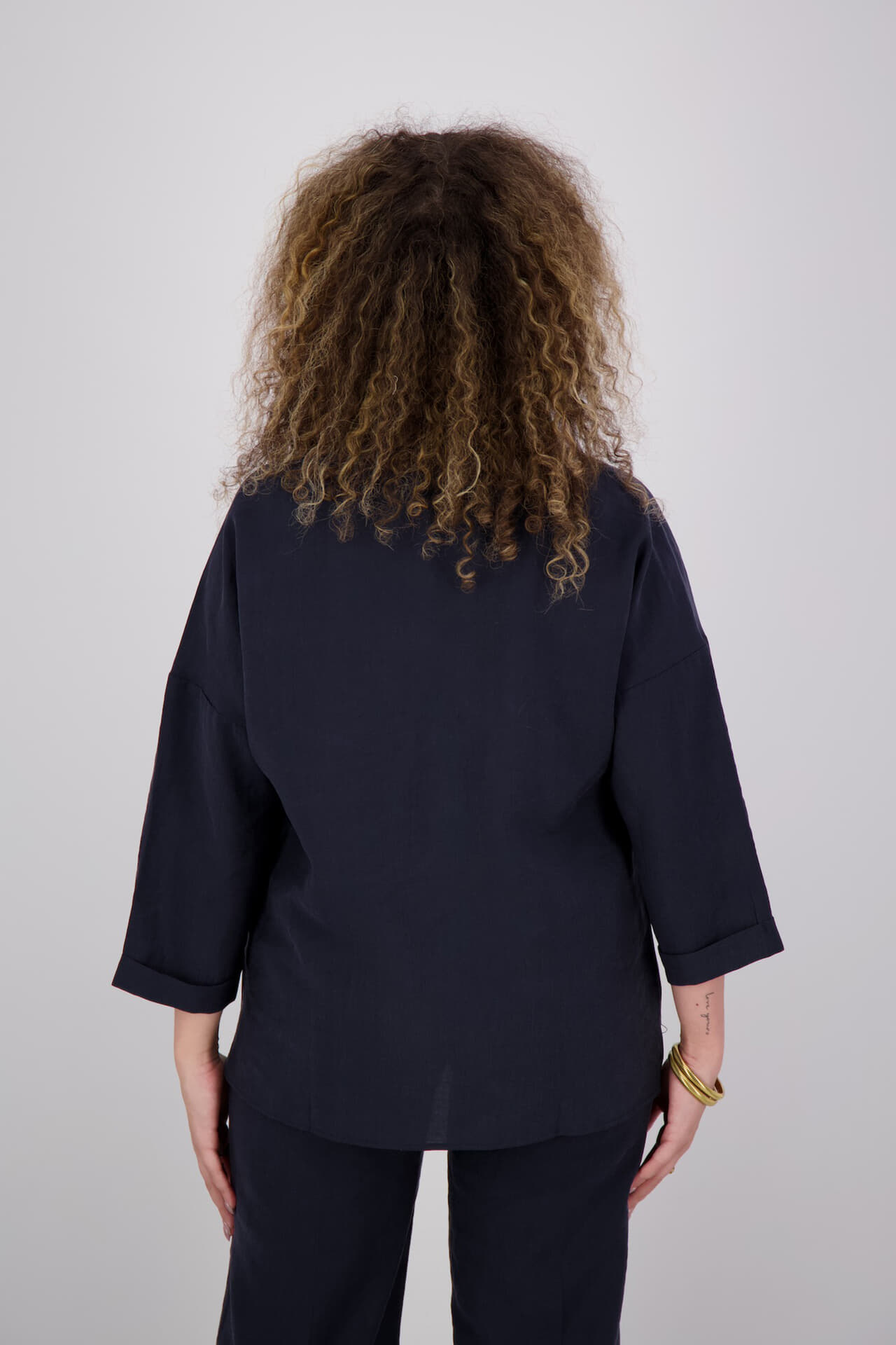 Blouse Caro van In Shape is een casual overhemd met spreidkraag, knoopsluiting en effen kleur. De losse pasvorm en 3/4 mouwen met omslag geven ruimte en gemak. De afgeronde zoom valt achter iets langer. Combineer met een jeans of nette broek.