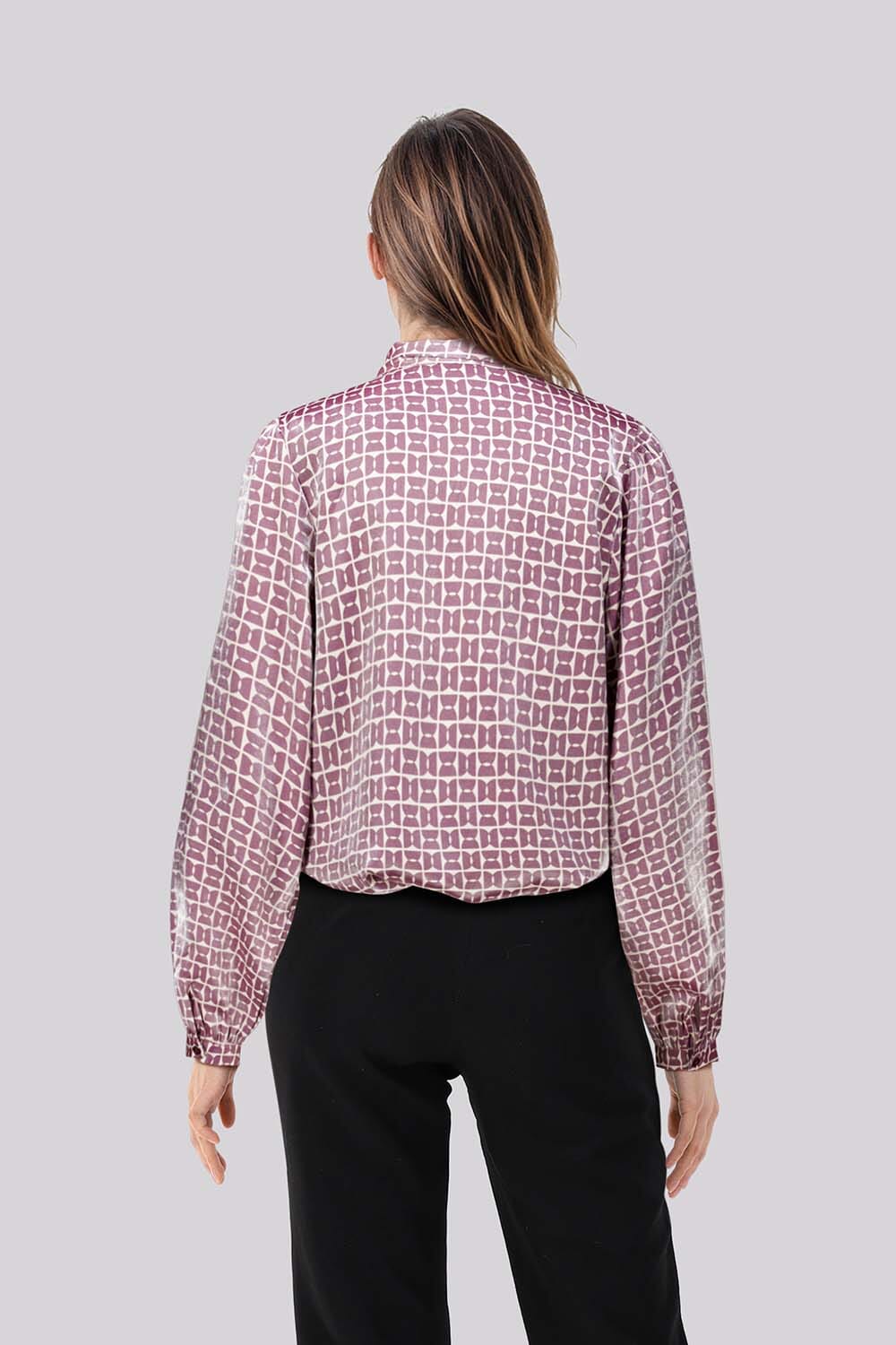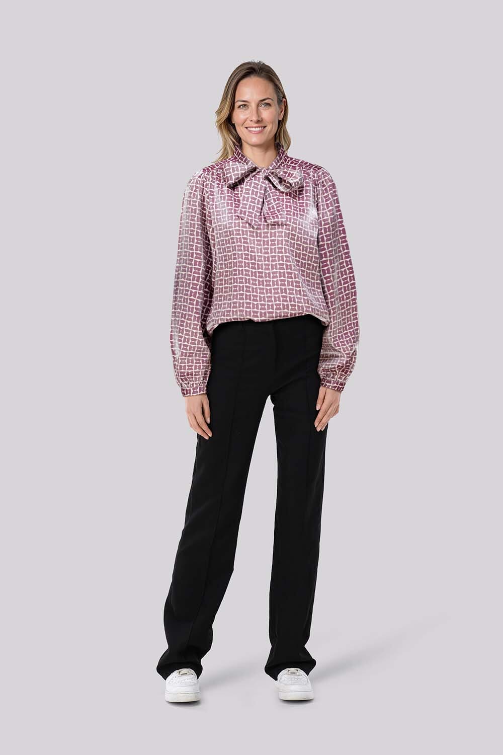 De Daniella blouse van In Shape is een stijlvolle damesblouse met een grafisch patroon. Uitgerust met een strik kraag en lange mouwen, biedt deze blouse een vrouwelijke uitstraling. De manchetten met knopen voegen een verfijnd detail toe aan deze modieuze keuze.