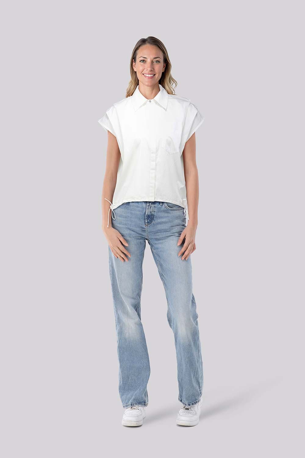 De Blouse Kito van In Shape is een casual dames blouse met korte mouwen en een opstaande kraag. Deze regular fit blouse heeft een knoopsluiting en een handige borstzak aan de voorzijde. De button down halslijn zorgt voor een stijlvolle uitstraling, ideaal voor dagelijks comfort.