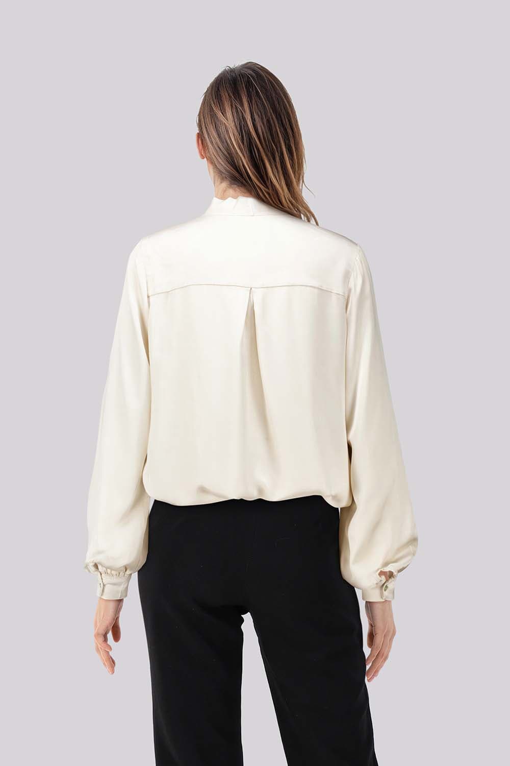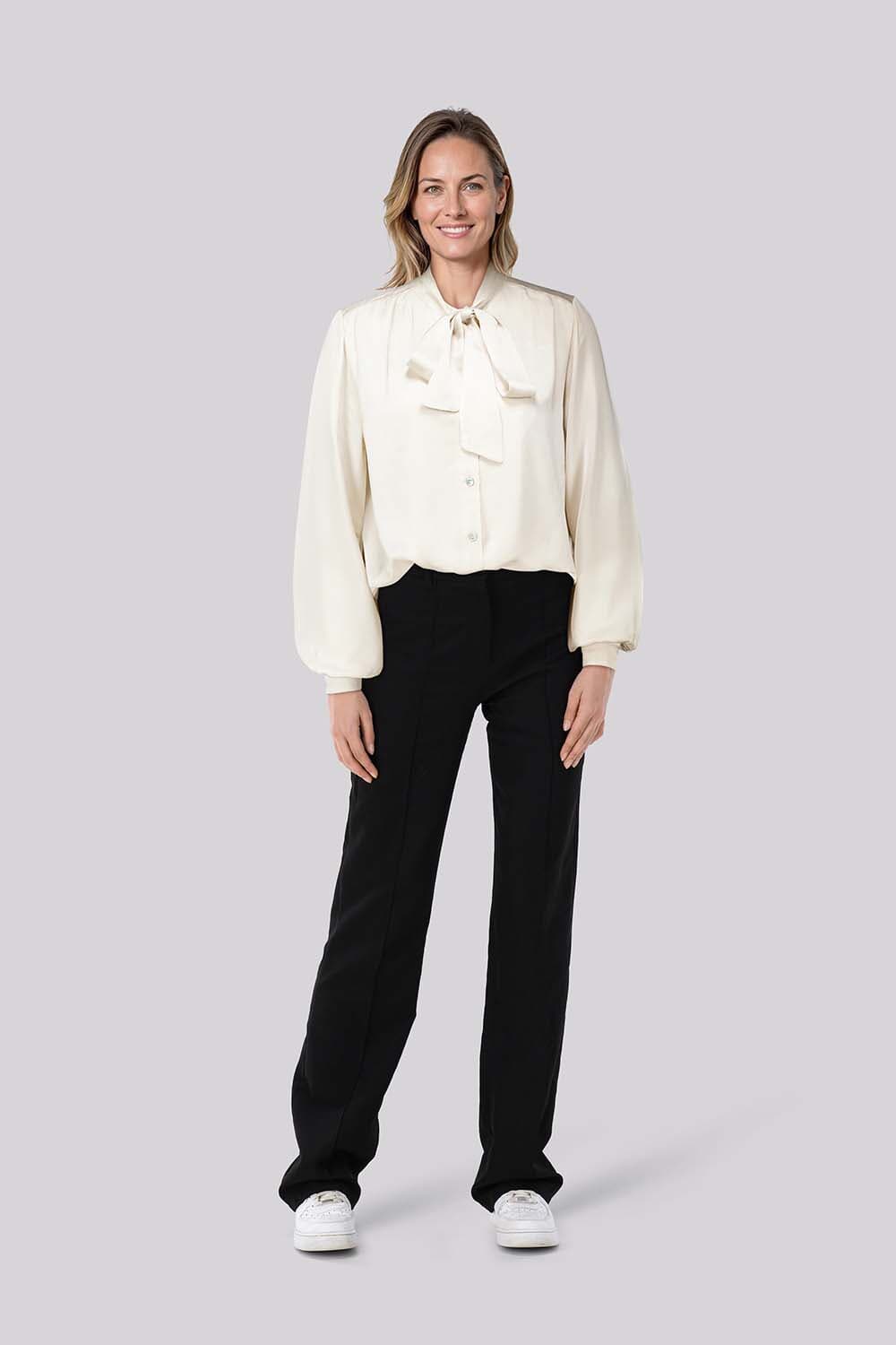 De Maera dames blouse van In Shape biedt een verfijnde stijl met een strik kraag, knoopsluiting en manchetten met knopen. Het effen patroon en de lange mouwen maken het een veelzijdig en stijlvol kledingstuk dat past bij diverse gelegenheden. Regular pasvorm voor comfort.