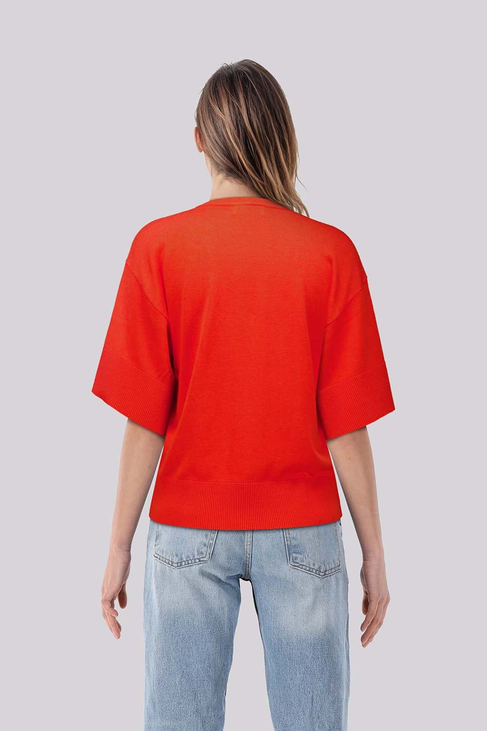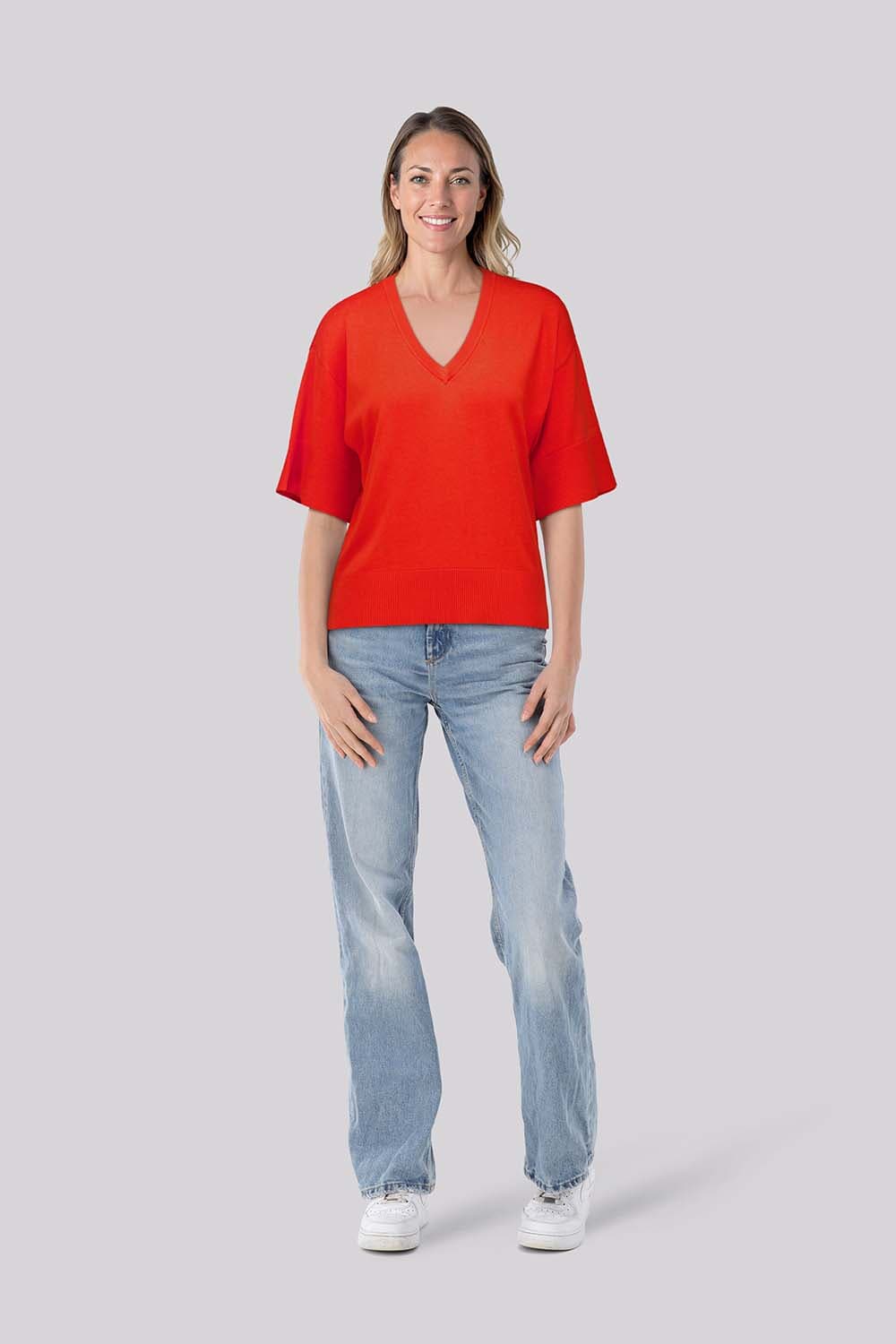 Top Orly van In Shape is een trui met V-hals, korte mouwen en een regular, losse pasvorm. Het effen breisel heeft ribboorden bij hals, mouwzoom en onderkant voor een nette afwerking. Draag met een jeans of rok voor een casual, feminine uitstraling.