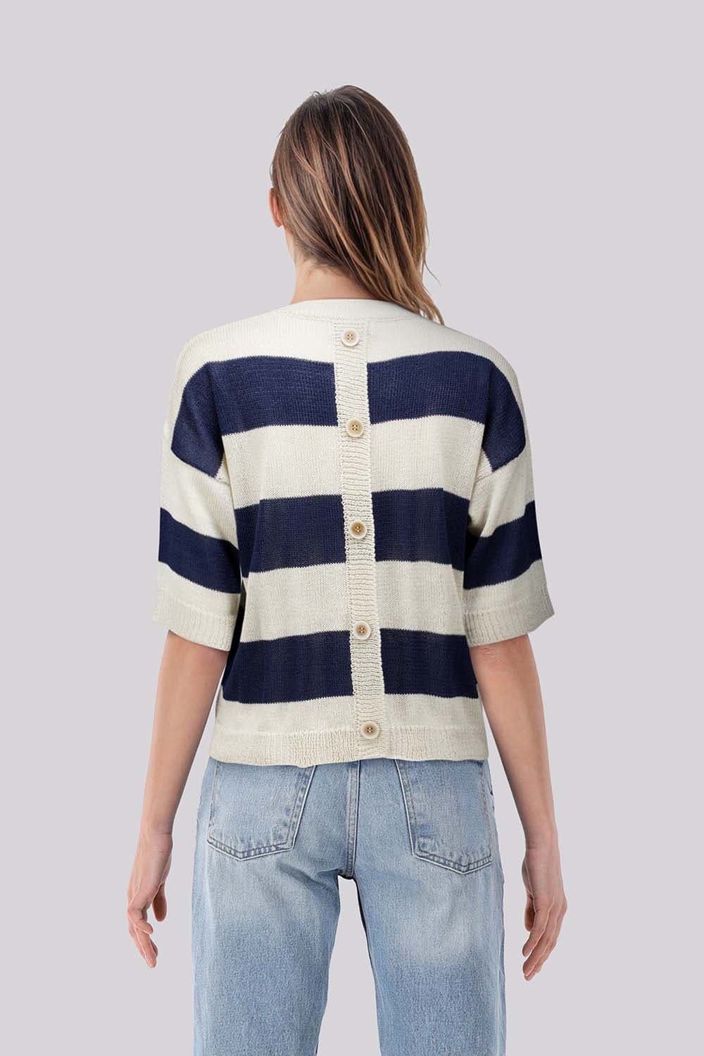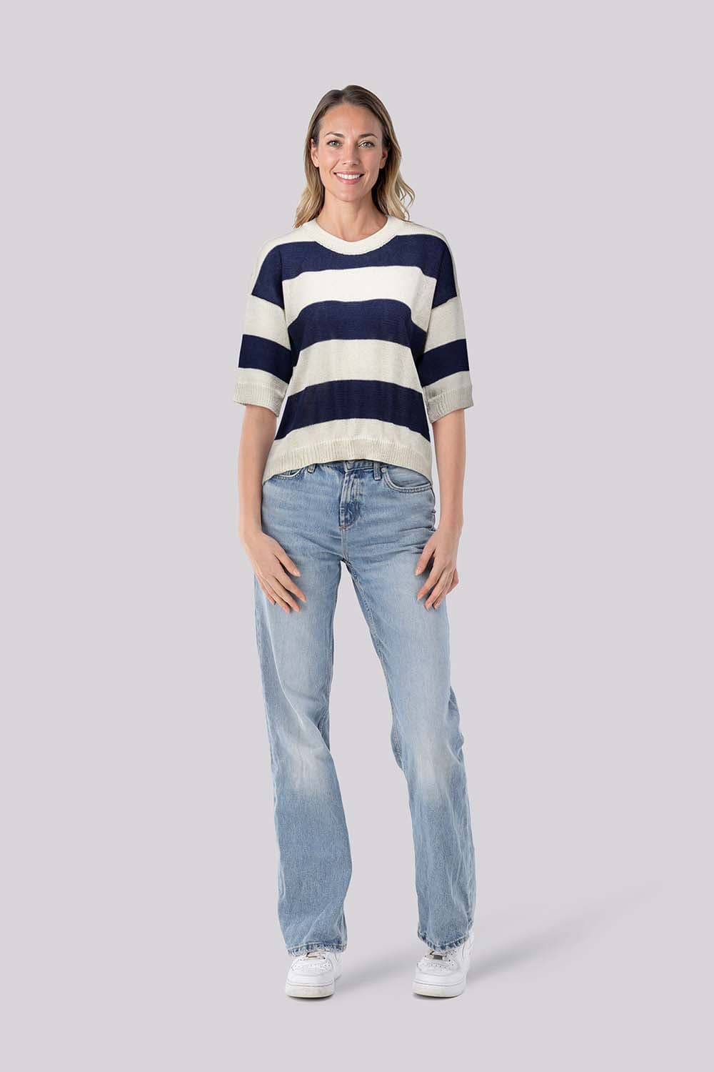 Trui Gina van In Shape is een stijlvolle dames trui met een casual uitstraling. Het heeft een ronde hals, een losse pasvorm en driekwart mouwen. De streepjespatroon voegt een speels element toe, waardoor deze trui perfect is voor elke gelegenheid. Ervaar het comfort en de stijl!