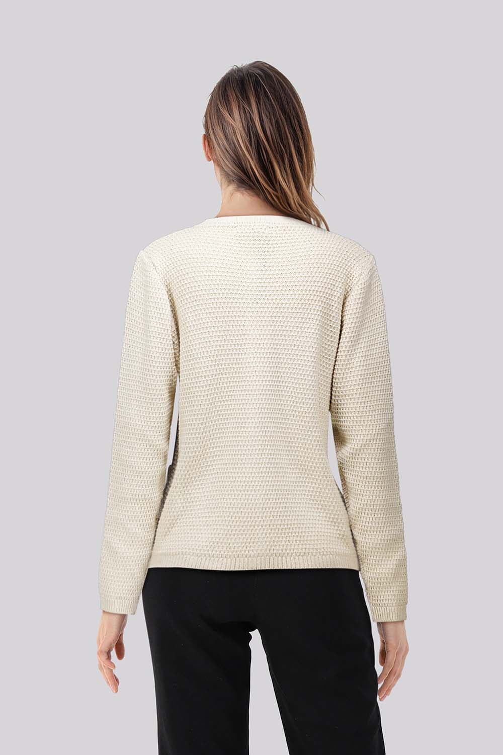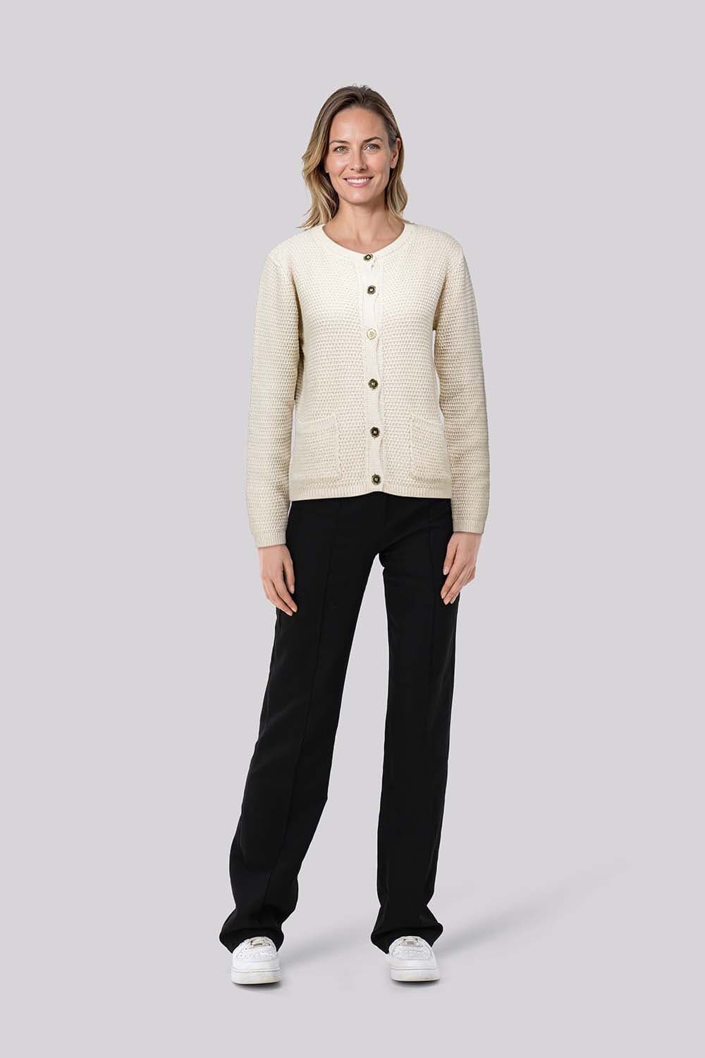 Vest Sofia van In Shape is een casual dames vest met een boxy fit, lange mouwen en een effen patroon. De knopen sluiten het vest op stijlvolle wijze. Perfect voor een toegankelijke en modieuze uitstraling, ideaal te combineren met diverse outfits voor een warme, stijlvolle look.