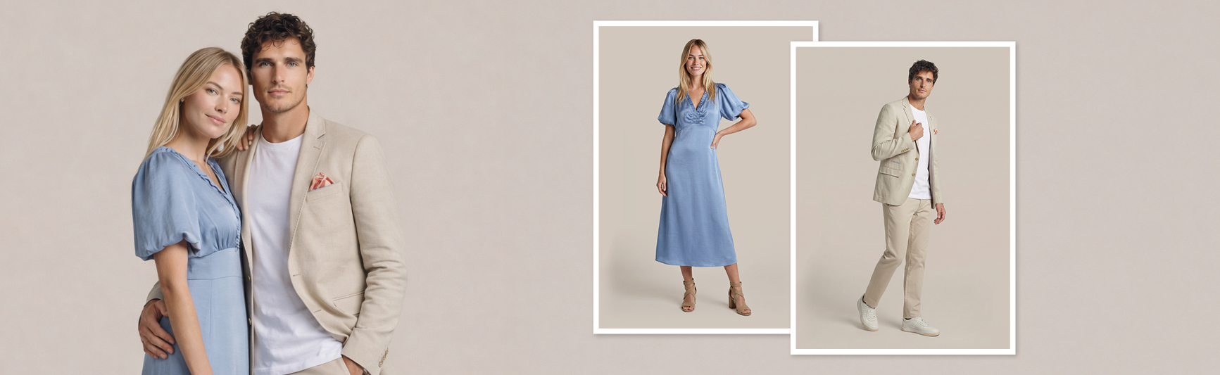 Op zoek naar de perfecte bruiloftskleding voor dames en heren? Bij Bomont vind je een stijlvolle collectie outfits voor bruiloften, van elegante jurken tot nette overhemden, blazers en complete looks. Onze bruiloftskleding combineert comfort en stijl, zodat je er verzorgd en feestelijk uitziet tijdens elke ceremonie.