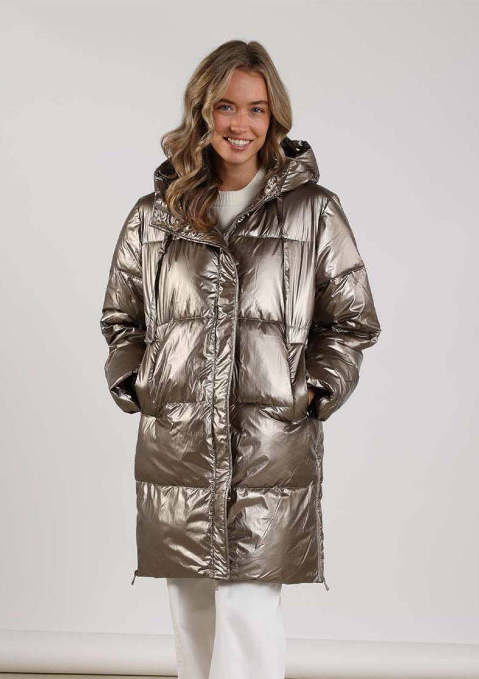 Maak je winteroutfit helemaal af met een jas die niet alleen warmte biedt, maar ook stijlvol is dankzij een metallic finish. Denk aan de korte metallic-jas van Geisha met een subtiele glans in grijs, voorzien van capuchon en handige zakken, ideaal voor koel weer met een fashion-twist. En combineer dit met de metallic-jas van Nukus in taupe: hetzelfde glamoureffect, maar in een neutrale kleur die makkelijk matcht met je hele garderobe. Zo blijf je warmte én karakter behouden, perfect voor dagen waarop je wilt opvallen zonder in te boeten op comfort.