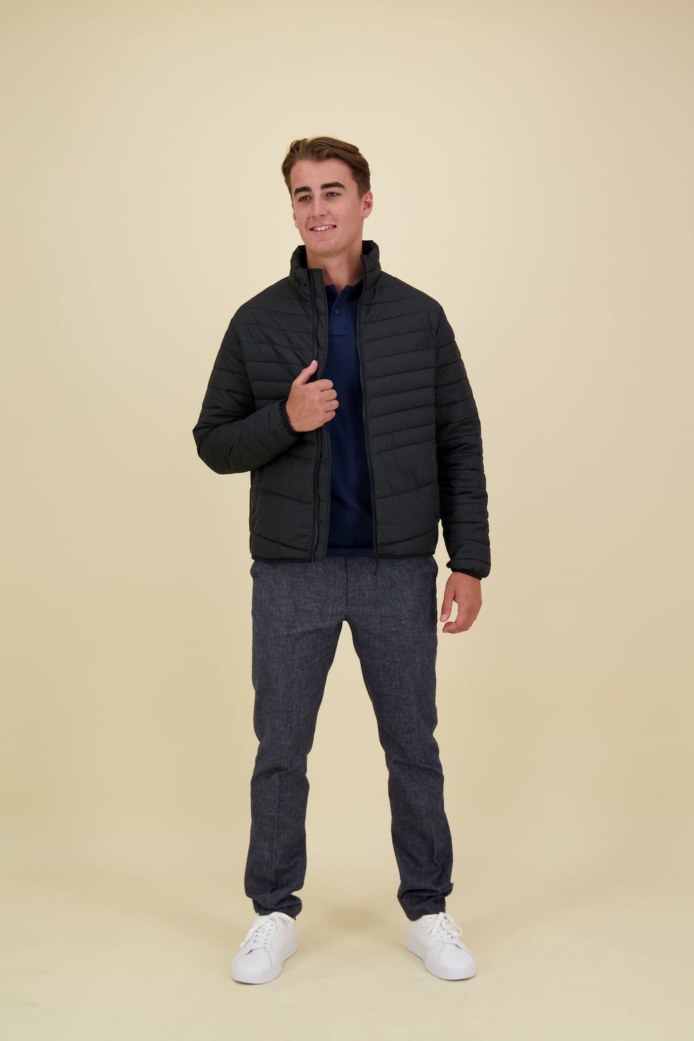 De Donsjas State van JACK & JONES is een stijlvolle en functionele puffer jacket, ontworpen om je warm te houden tijdens koude dagen. Gewatteerde stoffen, gemaakt door twee of meer lagen op elkaar te naaien, zorgen voor extra warmte. De jas is winddicht en heeft een hoge opstaande kraag en lange mouwen met elastische manchetten voor extra bescherming tegen de kou. De sluiting bestaat uit een verborgen zijritssluiting en een ritssluiting aan de voorkant, terwijl de voorzakken praktisch zijn voor het opbergen van kleine spullen. De jas heeft een korte lengte en een vulling van imitatiedons, wat zorgt voor lichtheid en warmte. Een handig detail is dat dit item in een van de zakken kan worden opgeborgen voor gemakkelijk transport.