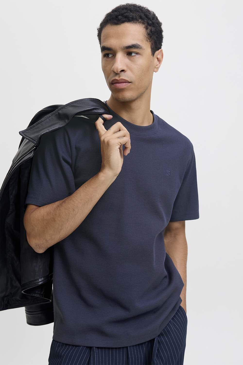 Het T-shirt Leo van Jack & Jones is een casual heren T-shirt met een ronde hals en een regular fit. Het heeft korte mouwen en een effen patroon, perfect voor een ontspannen look. De zachte stof biedt comfort voor dagelijks gebruik.