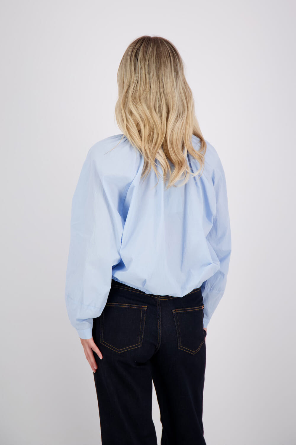 Blouse Jaime van JC Sophie is een casual blouse met opstaande kraag en ronde halslijn. De lange mouwen met manchetten en knopen geven een stijlvolle touch. De elastische taille zorgt voor een losse pasvorm, perfect voor zowel trendy als casual gelegenheden.