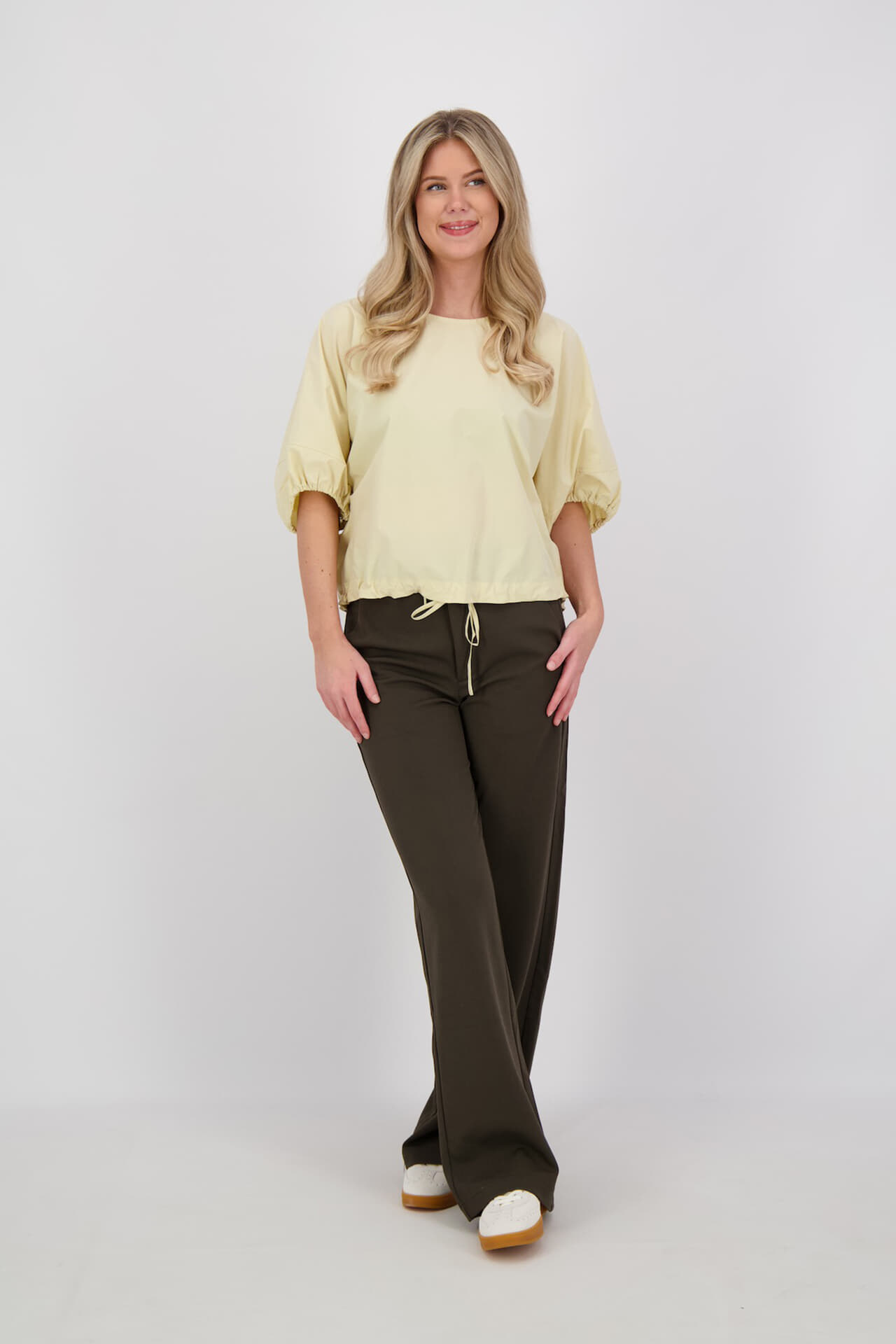 De Blouse Latifa van JC Sophie is een casual dames blouse met een losse pasvorm. Het heeft een ronde halslijn, korte mouwen met elastische manchetten, en een koordsluiting. Perfect voor een ontspannen look en comfortabel voor dagelijks gebruik.