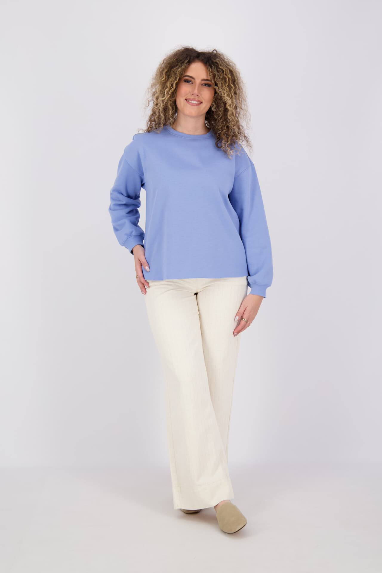 Sweater Lilly van JC Sophie is een casual top met lange mouw in een effen, lichtblauwe tint. De oversized pasvorm en verlaagde schoudernaden geven veel bewegingsruimte. De ronde hals en ribgebreide mouwboorden zorgen voor een nette afwerking. Combineer met een jeans of rok voor een relaxte outfit.