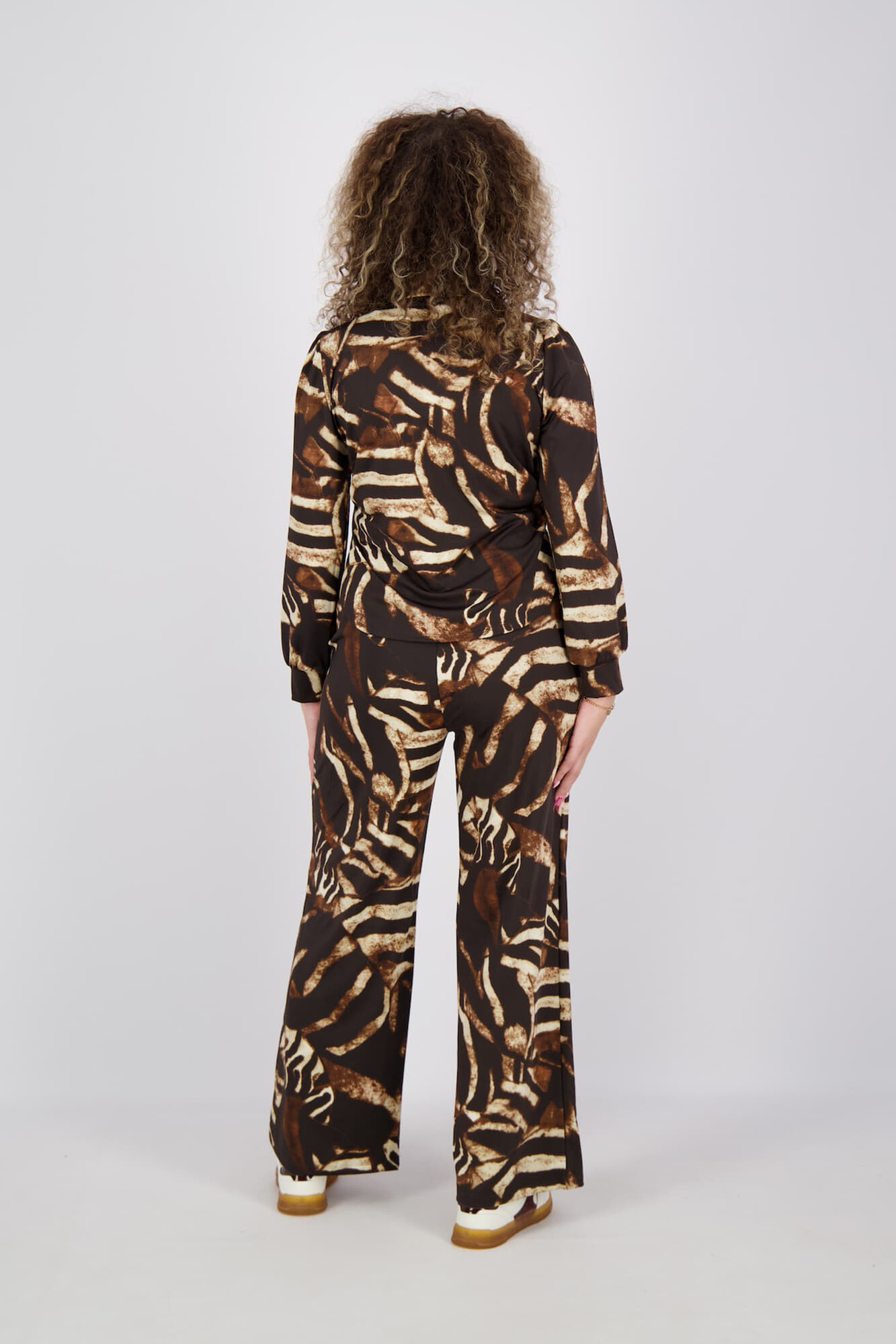 De jumpsuite met design van K Design combineert een stijlvolle dierenprint met lange mouwen voor een verfijnde uitstraling. Deze lange broek biedt een modieuze en comfortabele pasvorm. Ideaal voor diverse gelegenheden, voegt het een vleugje elegantie en persoonlijkheid toe aan elke garderobe.
