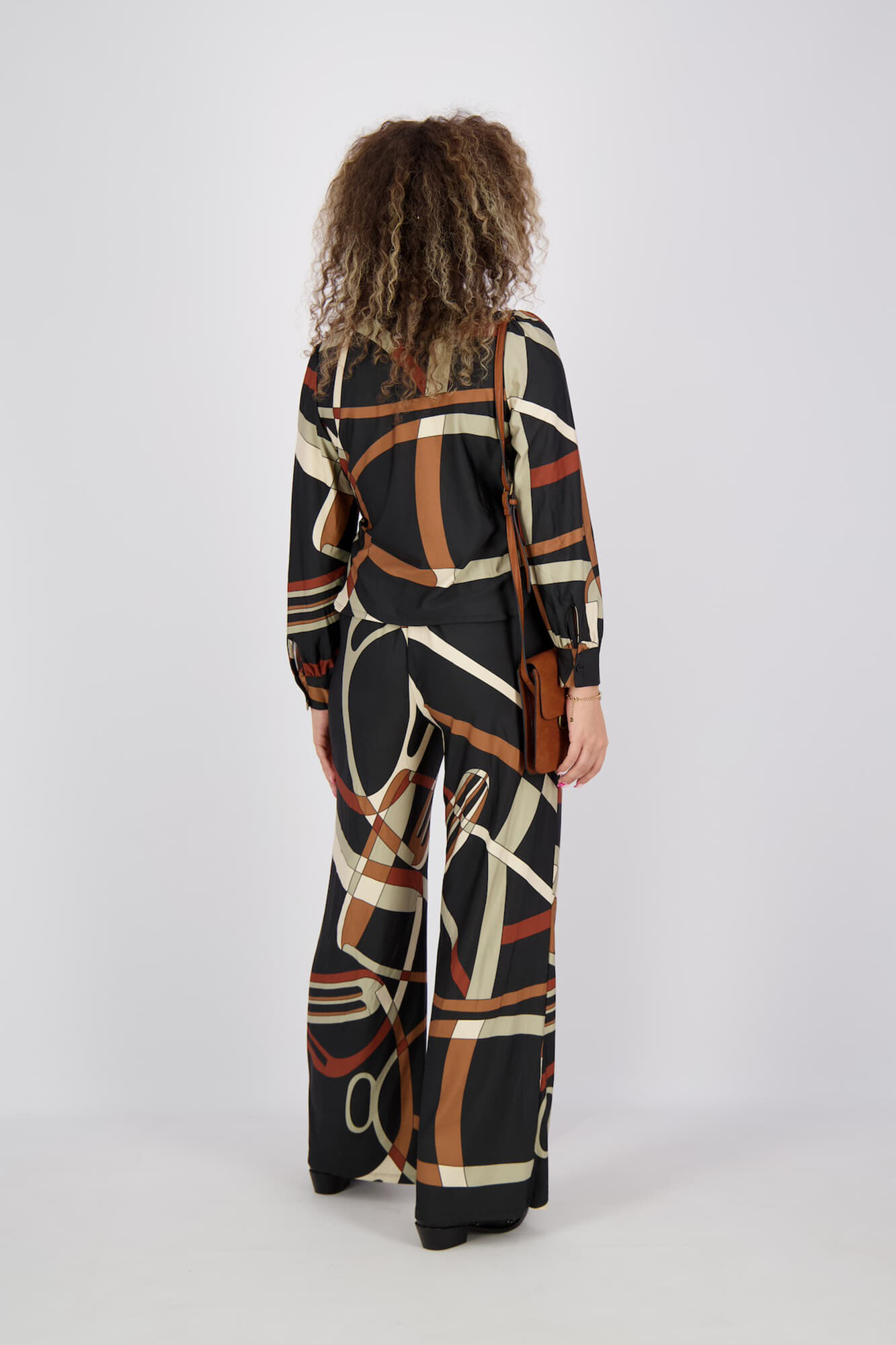 De jumpsuite van K Design biedt een elegante uitstraling met een grafisch patroon. Voorzien van een reverskraag, v-hals en lange mouwen met manchetten, combineert het stijl en comfort. Ideaal voor nette gelegenheden, sluit het met een knoop en ritssluiting voor een verfijnde look.