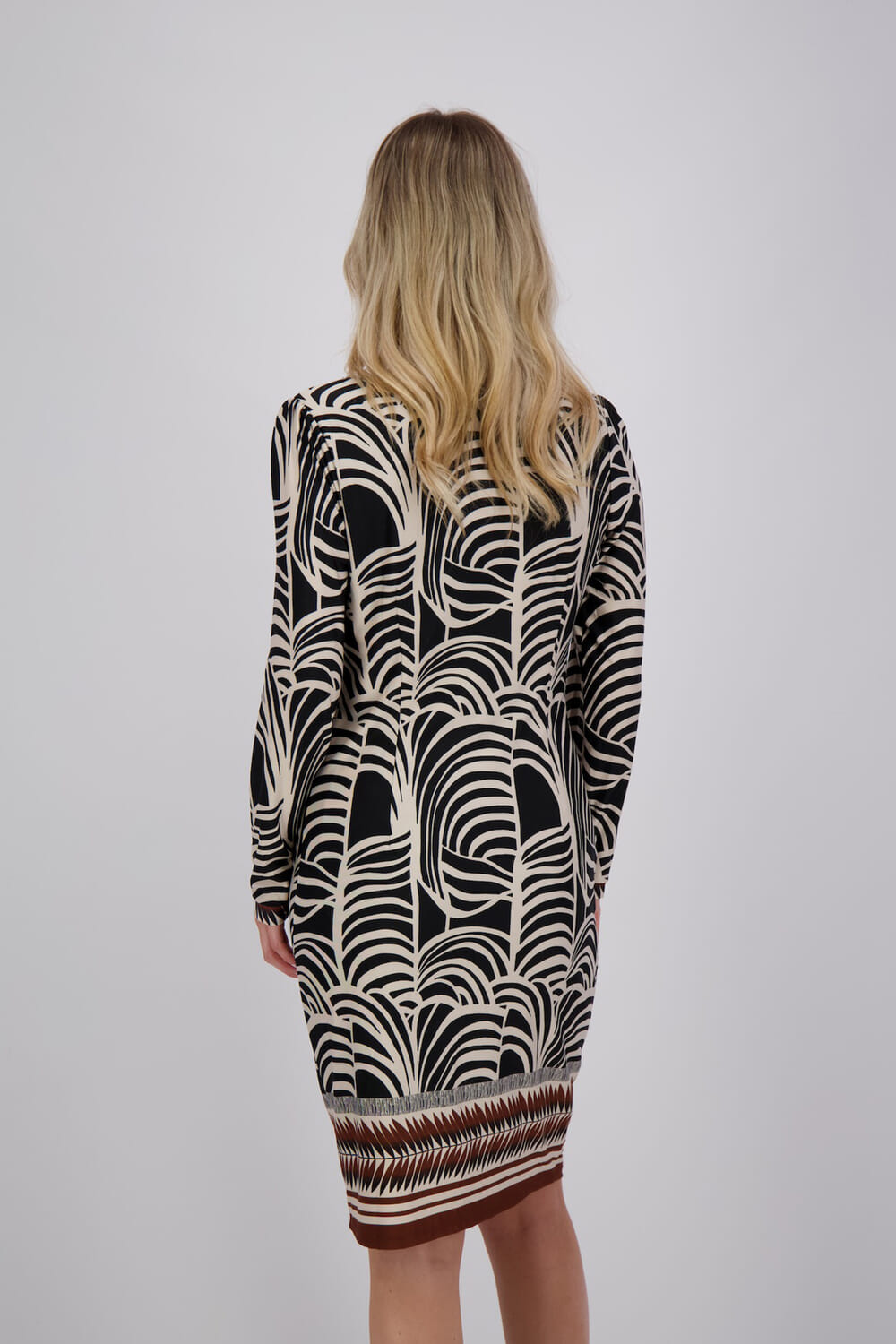 De jurk met ronde hals & design van K Design valt onder de categorie dames jurken. Deze stijlvolle jurk heeft een grafisch patroon, lange mouwen en een ronde hals, perfect voor nette gelegenheden. De midi-lengte voegt een verfijnde touch toe aan elke outfit.