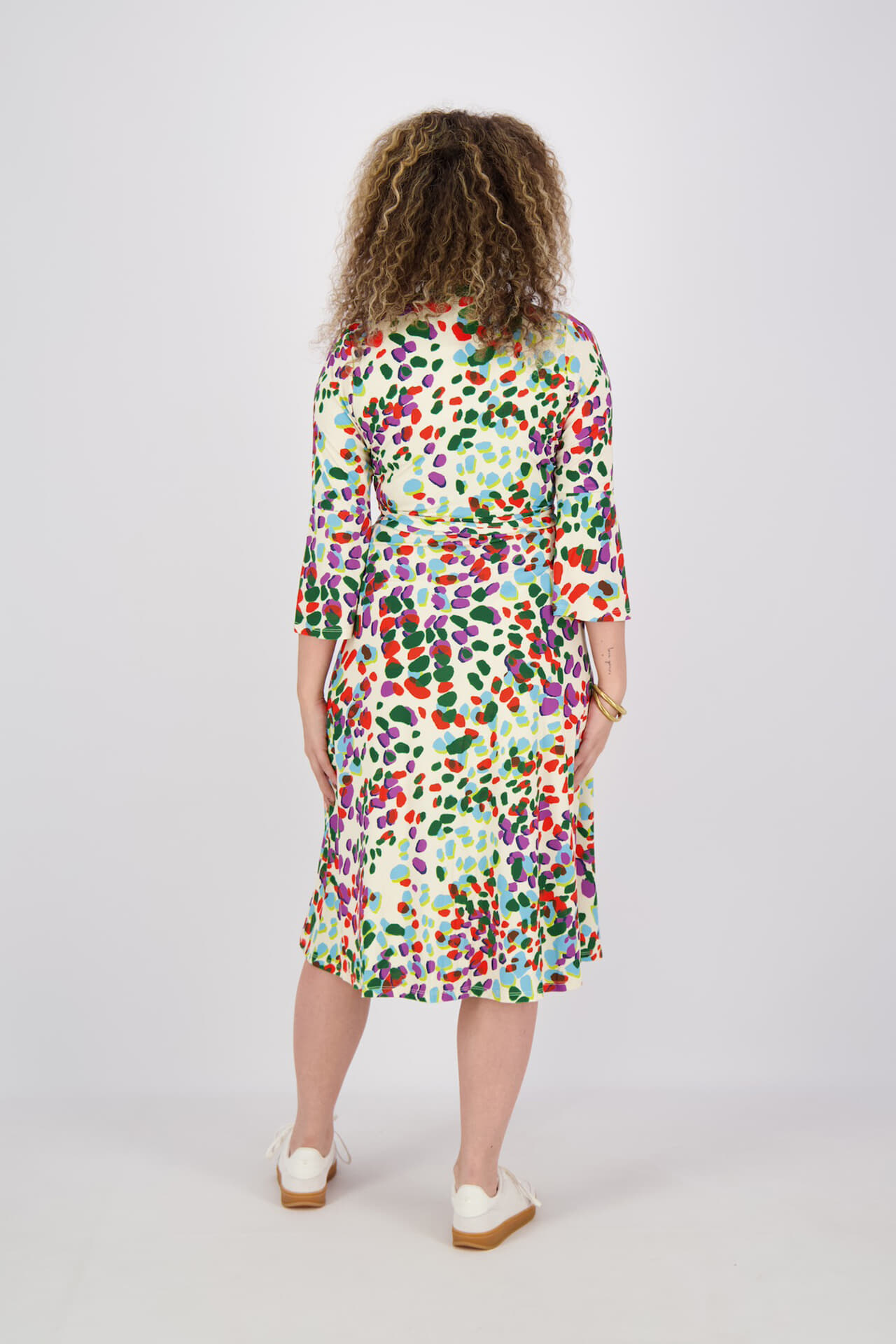 Deze jurk van K Design is een stijlvolle aanvulling op elke garderobe. Met een all-over patroon en 3-kwart mouwen biedt het een vrouwelijke uitstraling. De midi-lengte rok en de handige aanschuifsluiting maken het ideaal voor verschillende gelegenheden. Voeg kleur toe aan je collectie met deze damesjurk.