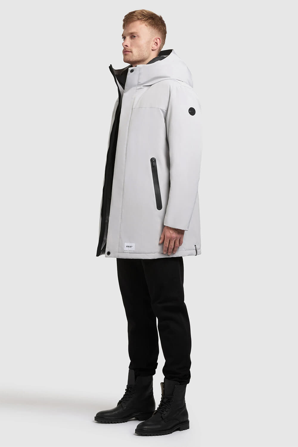 De Jas Kann Waterafstotend van Khujo is een donsjack met een capuchon en een 2-zijdige ritssluiting. Deze parka heeft een regular pasvorm en lange mouwen. Het effen patroon en het waterafstotende materiaal maken het perfect voor diverse weersomstandigheden.
