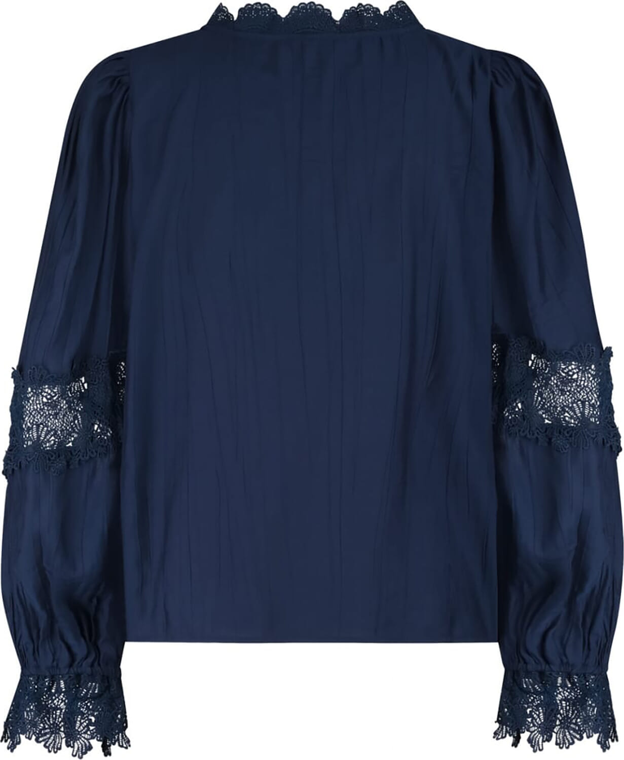 Blouse Aicha van Label Dot is een stijlvolle blouse met een opstaande kraag en lange mouwen met broderie anglaise details op de manchetten. Deze vrouwelijke blouse voegt een elegant accent toe aan elke garderobe.