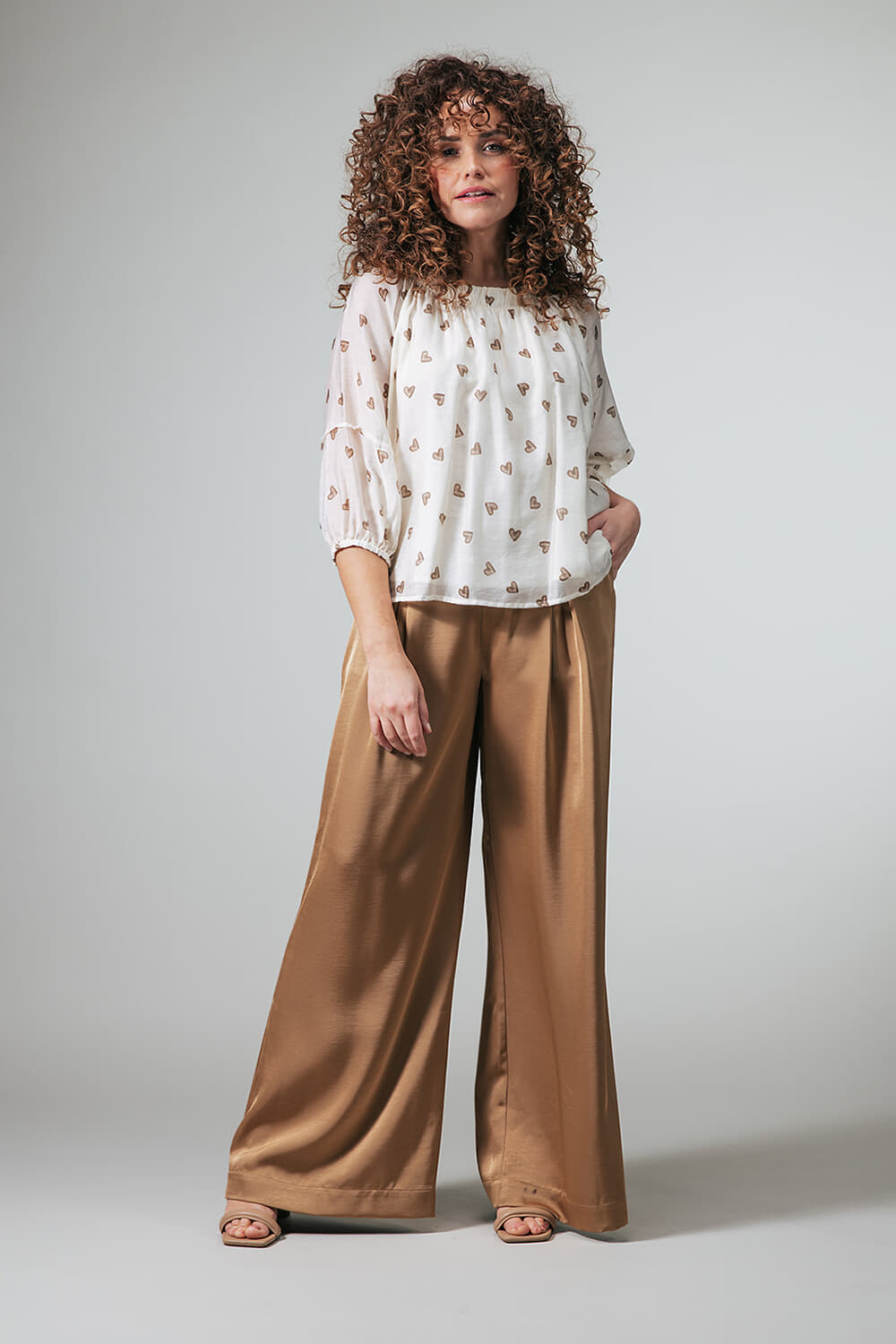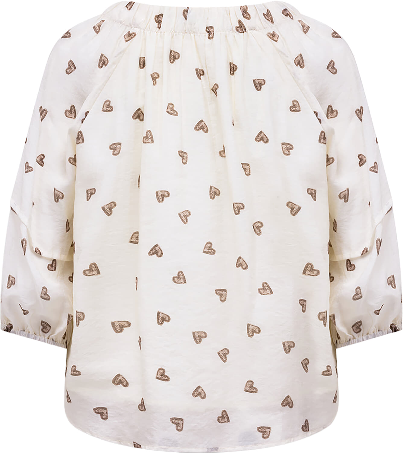 De Blouse Alicia van Label Dot is een stijlvolle dames blouse met een charmant hartjespatroon. Deze blouse heeft een losse pasvorm en driekwart mouwen met elastische manchetten, perfect voor een casual look. Ideaal voor een gezellige en modieuze uitstraling.