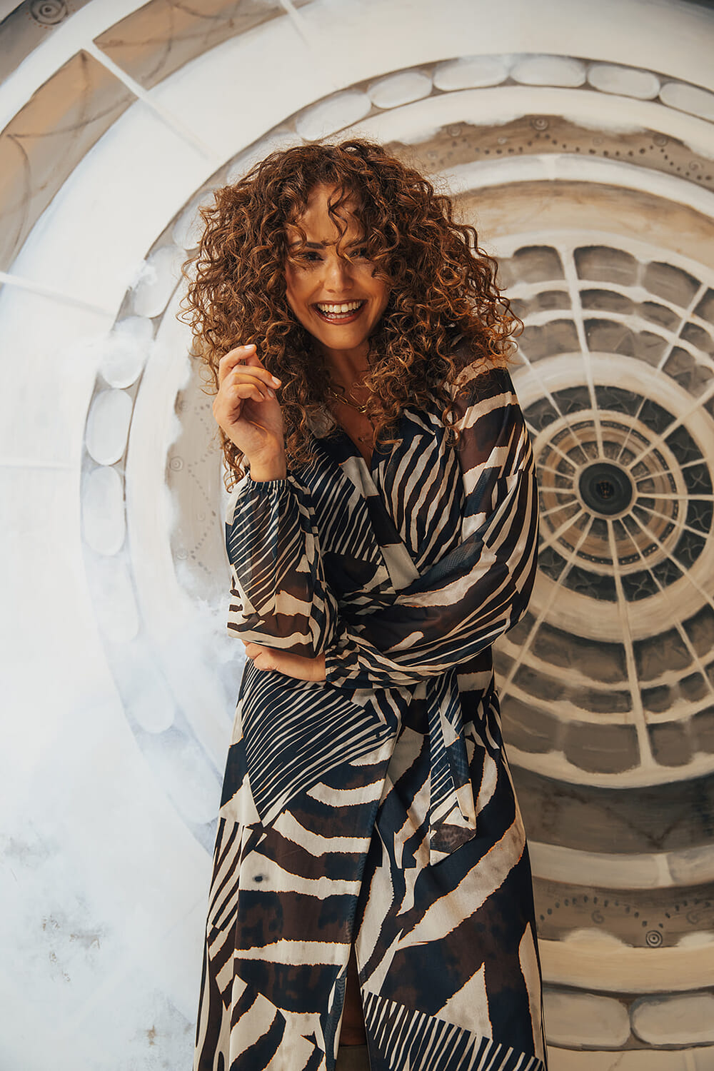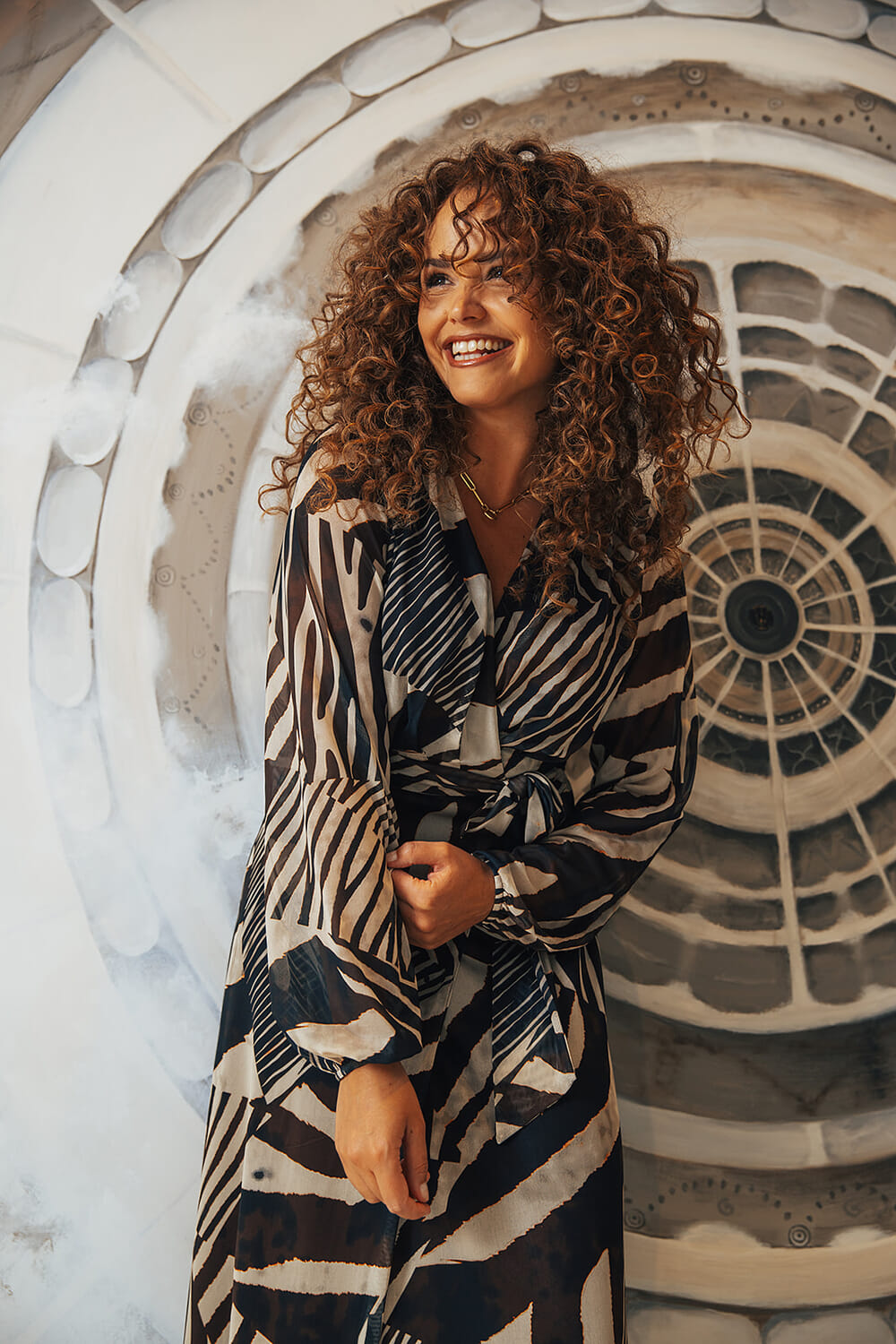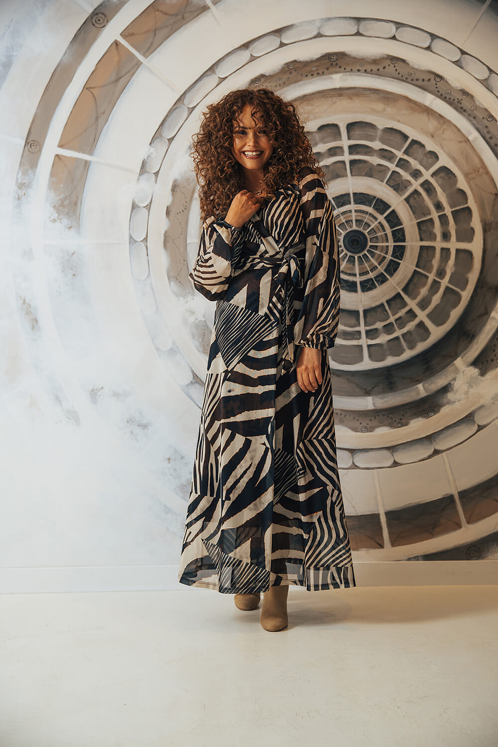 Jurk Sophia van Label Dot is een stijlvolle dames jurk lange mouw met dierenprint. De maxi-lengte en lange mouwen maken het perfect voor diverse gelegenheden. De jurk straalt elegantie uit met zijn unieke patroon en biedt comfort en stijl in één.