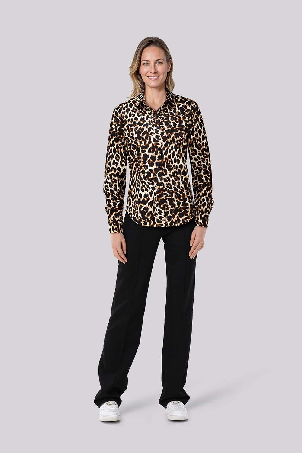 Annika, een blouse van Lady Day, straalt verfijning uit met een panterprint, lange mouwen en knoopsluiting. De stijlvolle combinatie van patronen en het merk Lady Day maakt deze blouse een tijdloze keuze voor elke gelegenheid. Een perfecte balans tussen elegantie en mode.