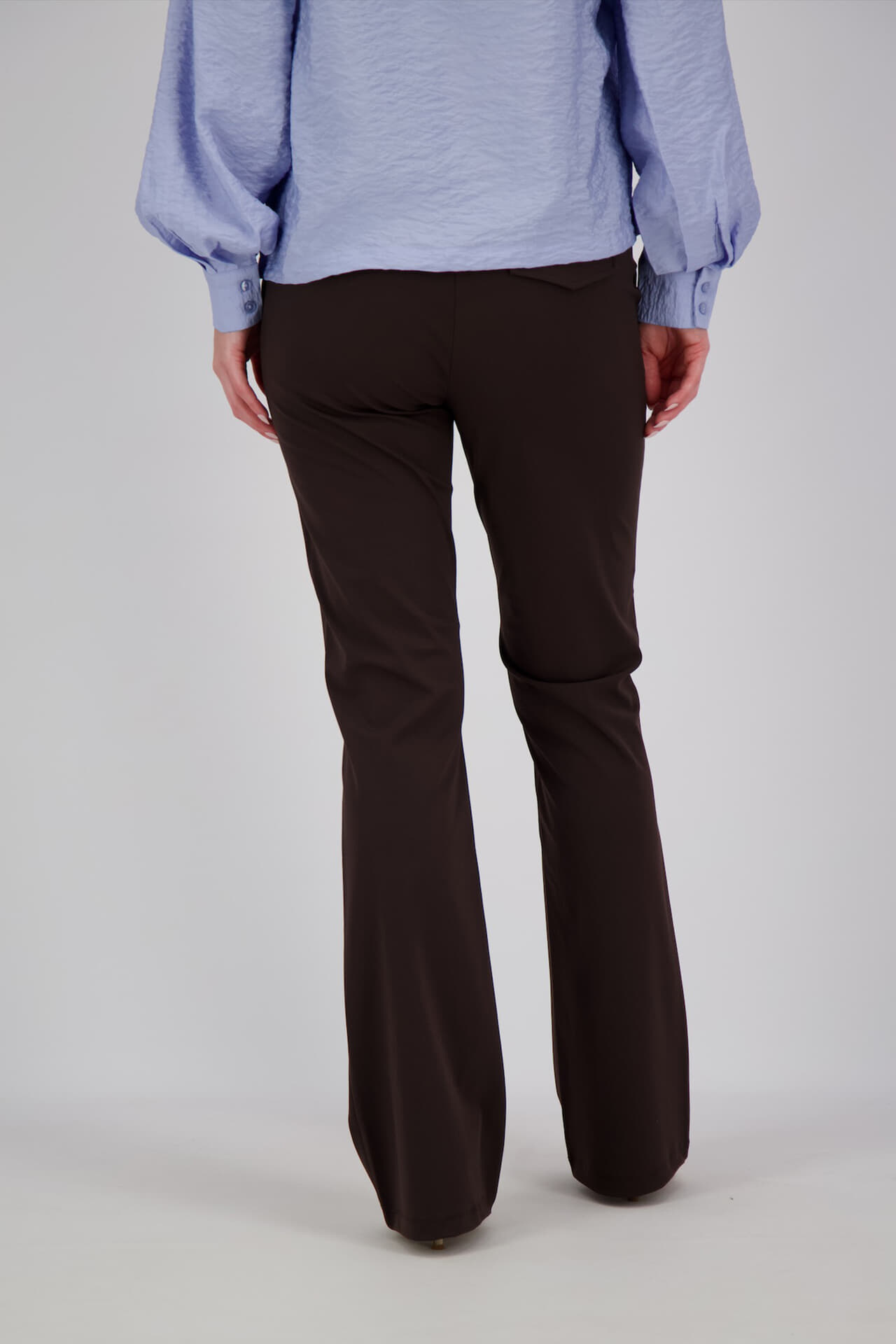 Broek Poppy flaired van Lady Day biedt een elegante, effen flared broek met normale taille en slimfit pasvorm. De knoop- en ritssluiting zorgen voor een fijne pasvorm, terwijl de achterzakken praktisch zijn. Ideaal voor een stijlvolle aanvulling op elke garderobe.