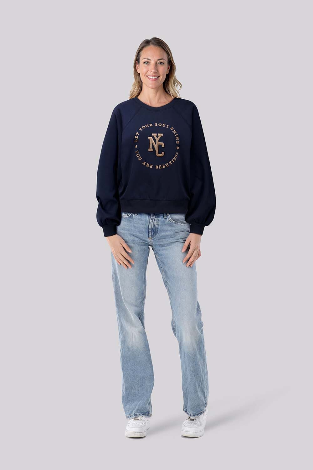 De Sweater Joyce van Lady Day is een casual dames sweater met een opvallend logo op de borst. De ronde hals en de ribgebreide mouwboorden geven een stijlvolle uitstraling. Met een relaxed fit en lange mouwen is deze sweater perfect voor elke gelegenheid.