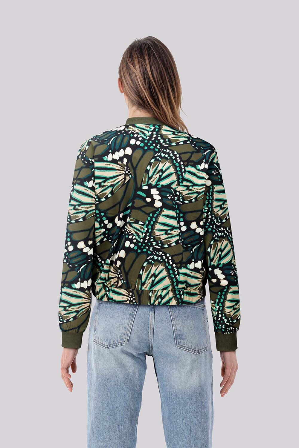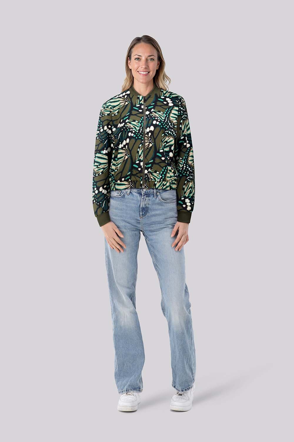 De Top Raven, een stijlvolle dames top lange mouw van Lady Day, combineert casual comfort met een grafisch patroon. De opstaande kraag en ritssluiting voegen een moderne touch toe aan deze bomberjas, perfect voor een modieuze uitstraling. Ideaal voor diverse gelegenheden.
