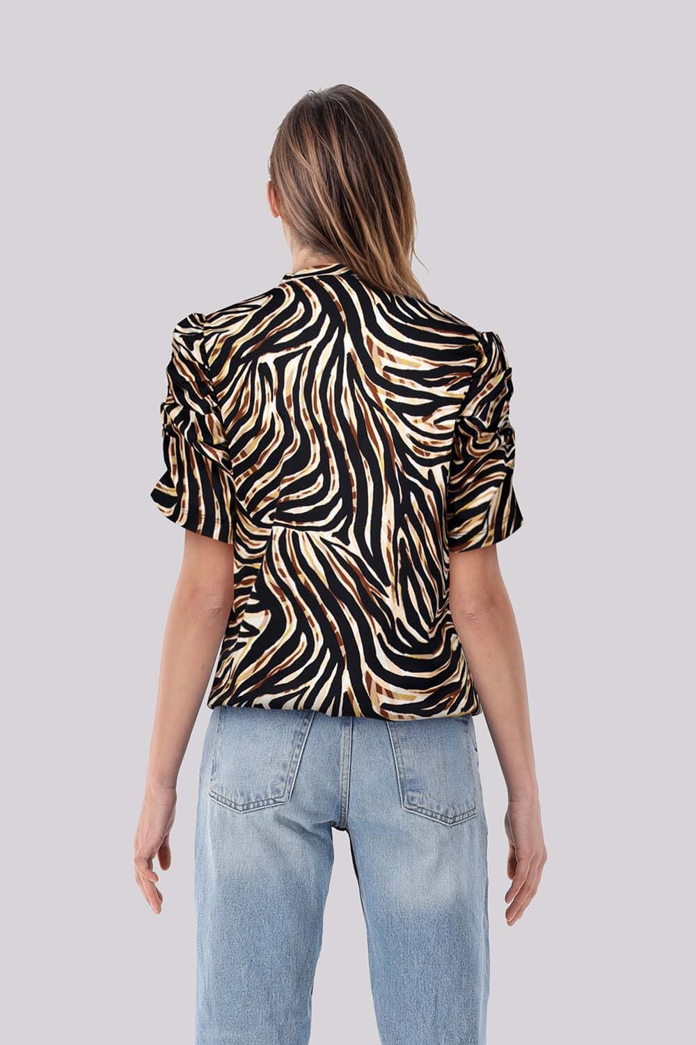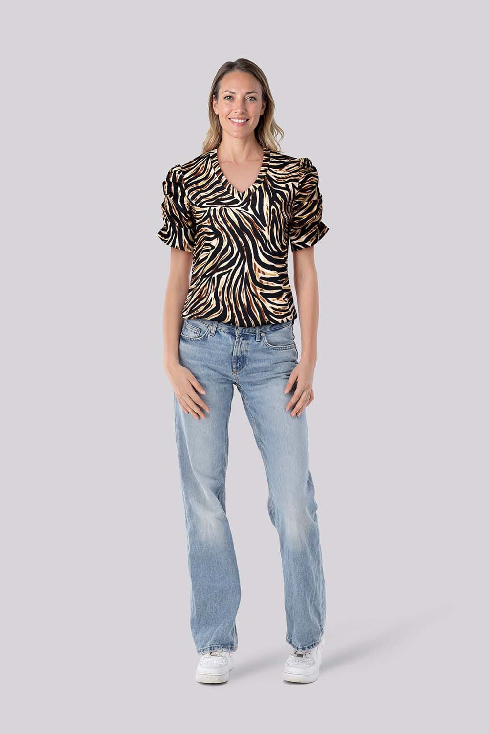 De top van Lady Day is een stijlvolle dames top korte mouw met een opvallende dierenprint en korte mouwen. Ideaal voor een casual look, de top combineert comfort en modieus design. De unieke print zorgt voor een levendige en modieuze uitstraling.