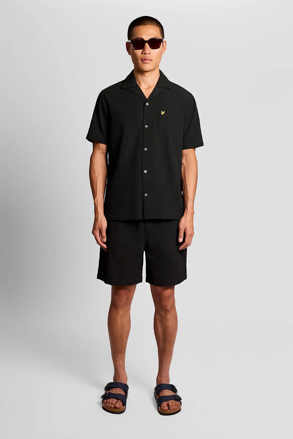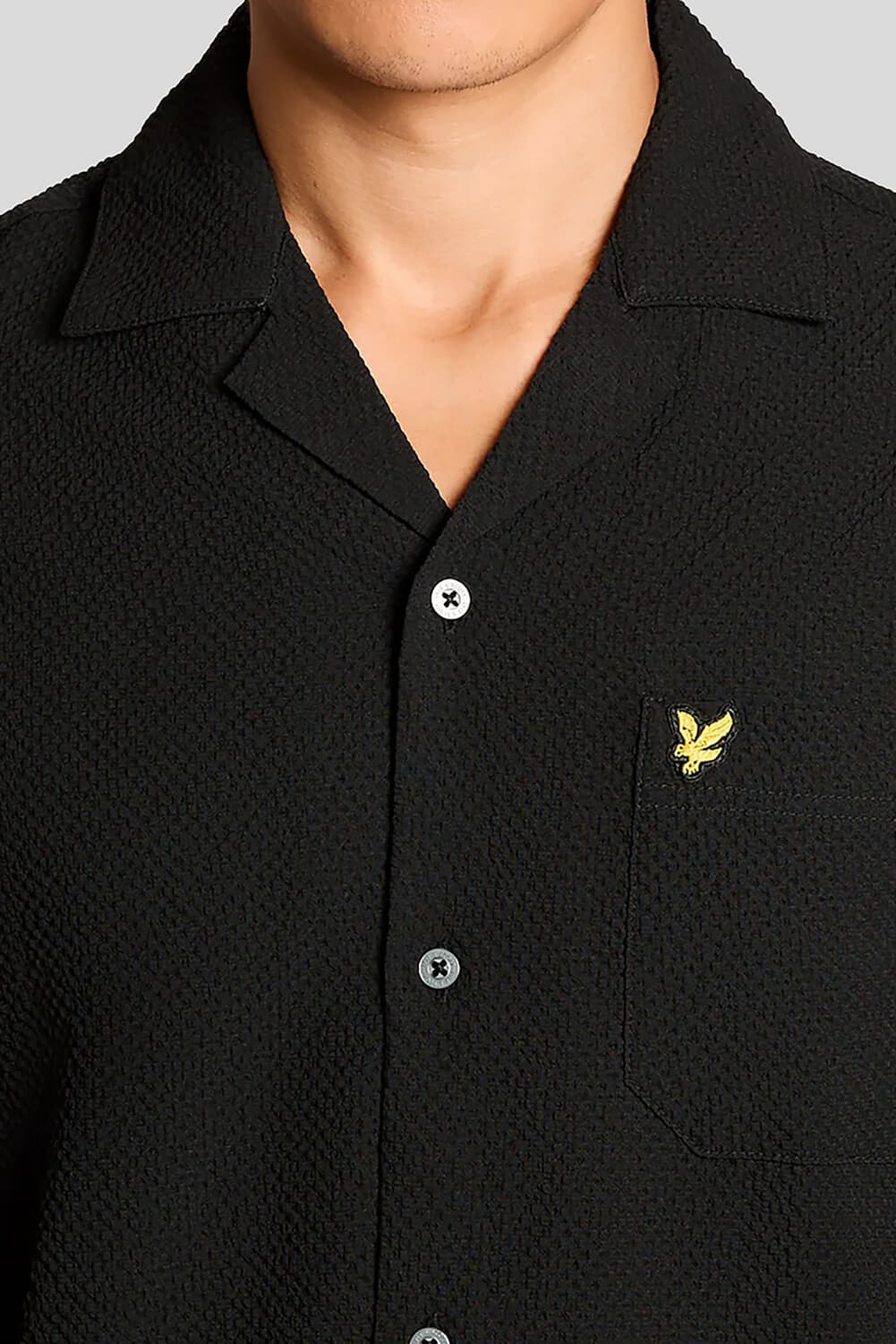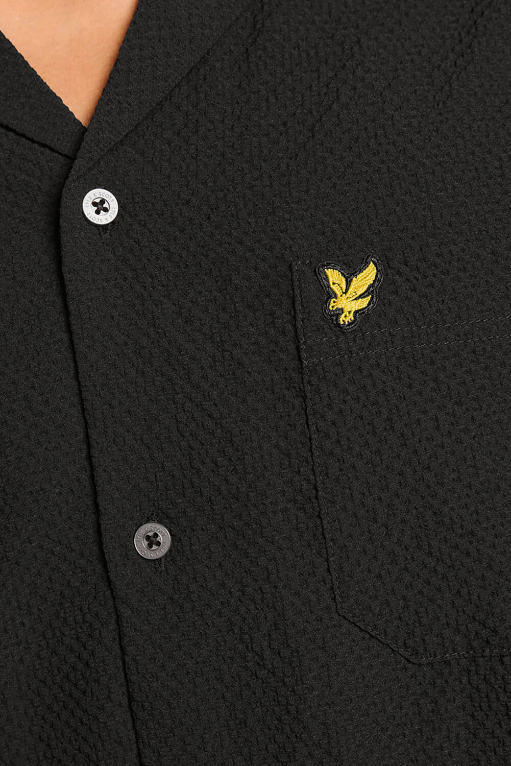 Overhemd Lyle&scott met casual uitstraling en korte mouw. De spreidkraag met revers, knoopsluiting en effen dessin zorgen voor een rustige basis. Voorzien van een borstzak en een subtiel logo. De licht gestructureerde stof draagt prettig. Combineer met een chino of short.