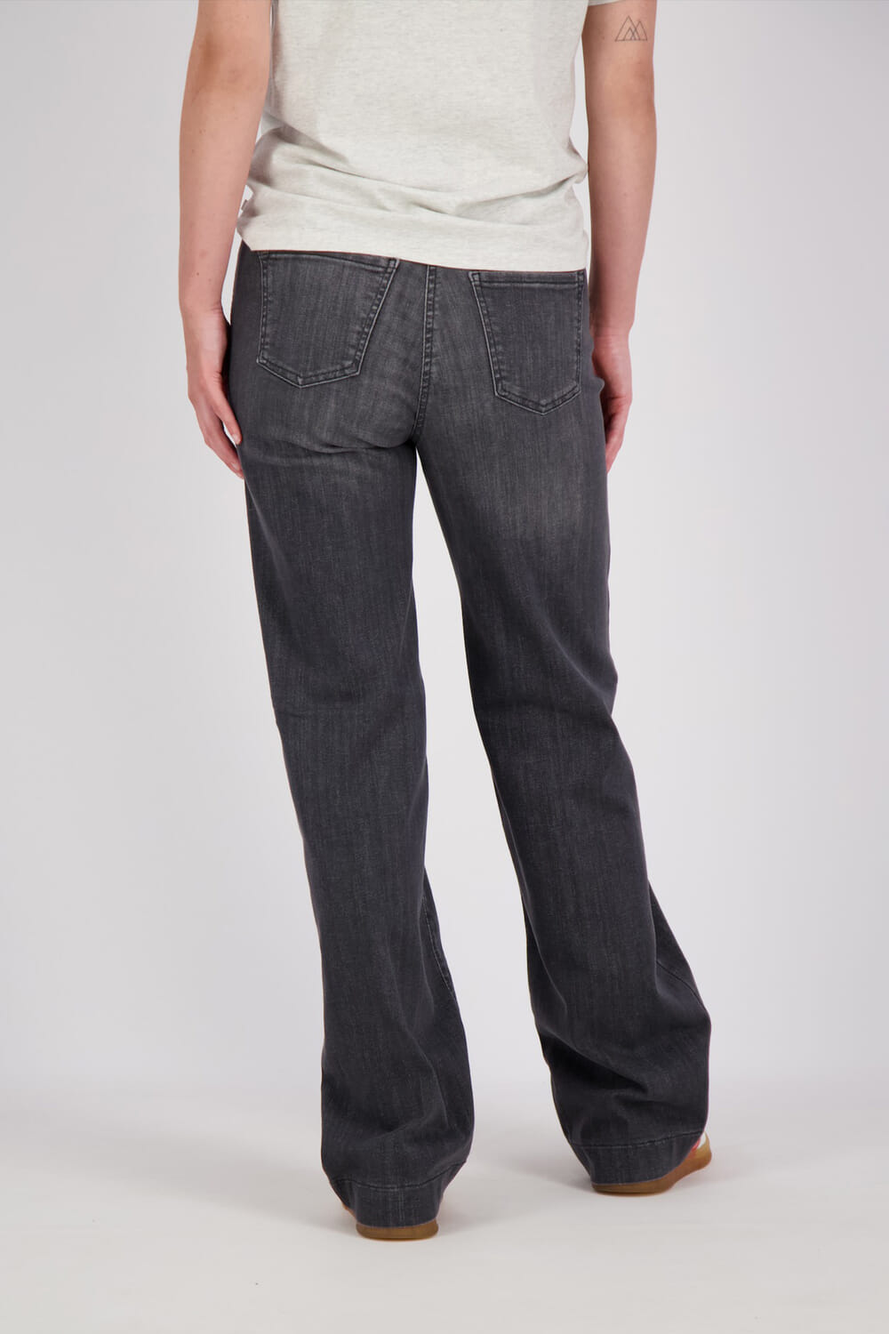 Jeans van Mac, een stijlvolle casual flared jeans met hoge taille en zowel voor- als achterzakken. De effen kleur maakt deze dames jeans veelzijdig en ideaal voor elke gelegenheid. Perfect voor een modieuze en comfortabele look.